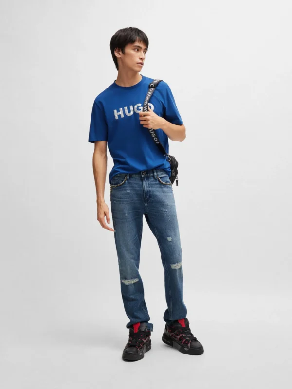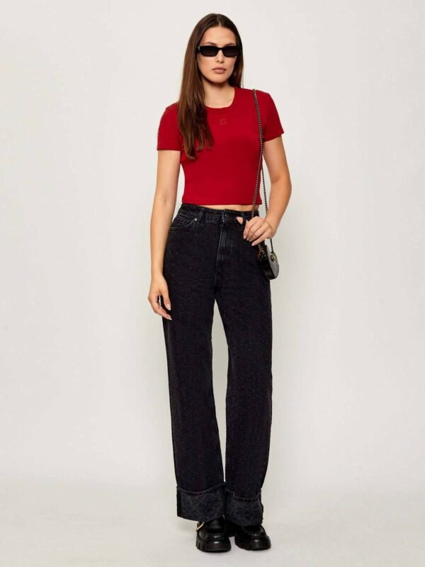 Embroidered wave crew-neck T-shirt