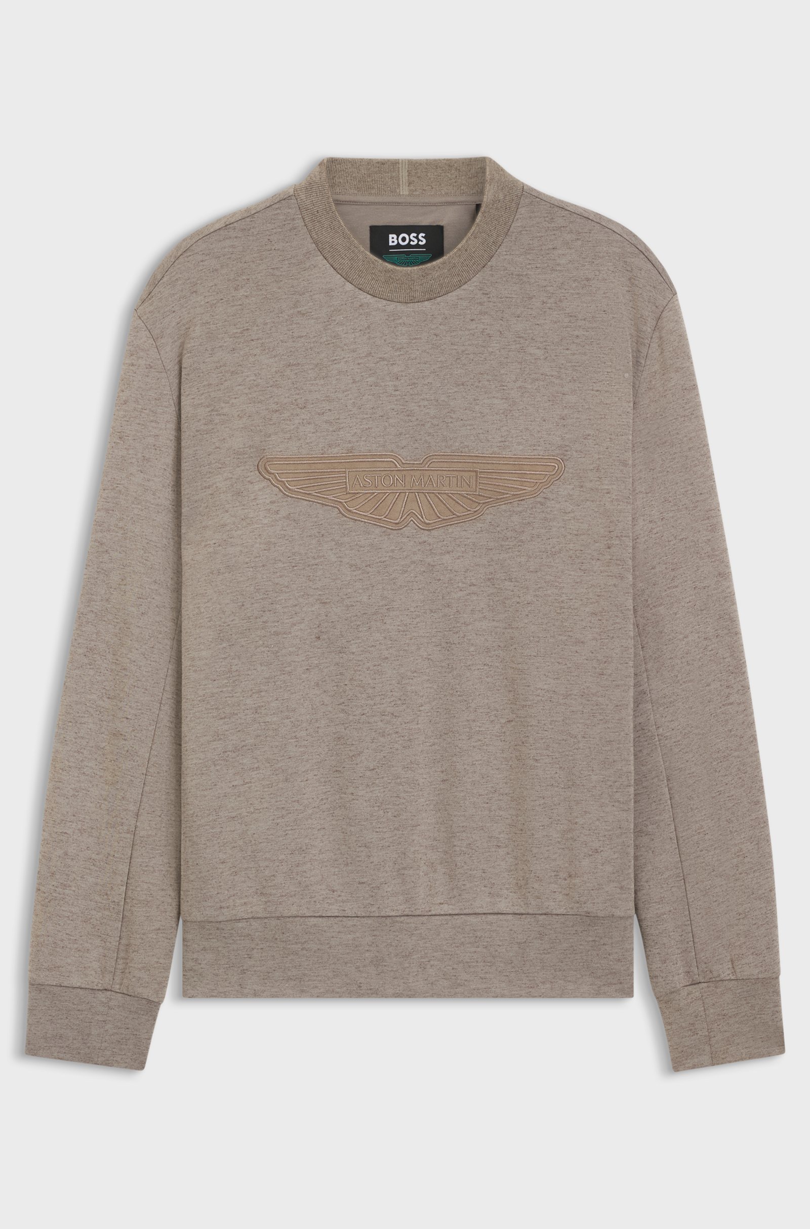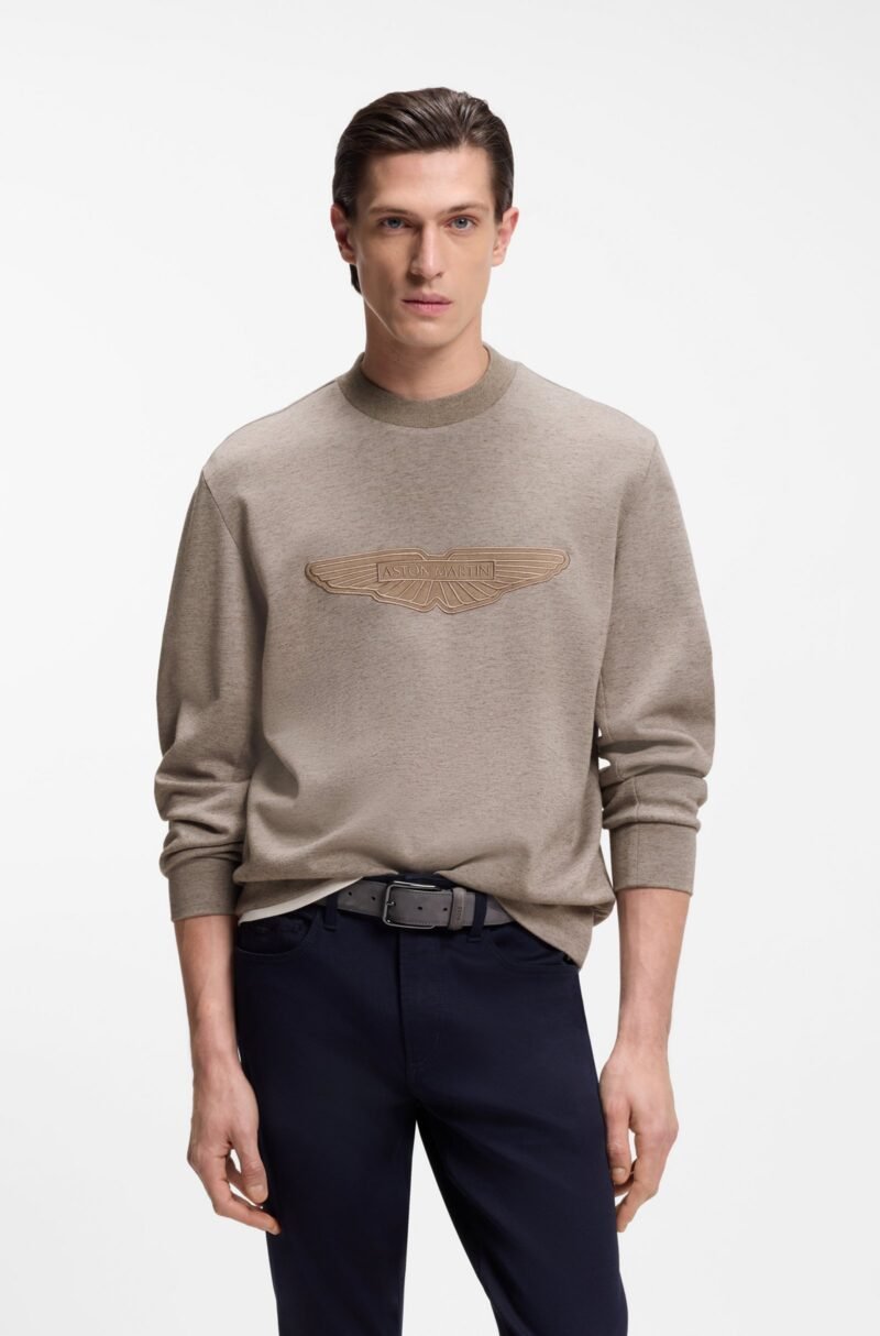 With its large wing detailing, this men’s BOSS x ASTON MARTIN jersey sweatshirt makes a distinctive layer. Cut to an easy regular fit. Blended with breathable modal and wool for comfort. BOSS x ASTON MARTIN showcases impeccable craftsmanship and sophistication.