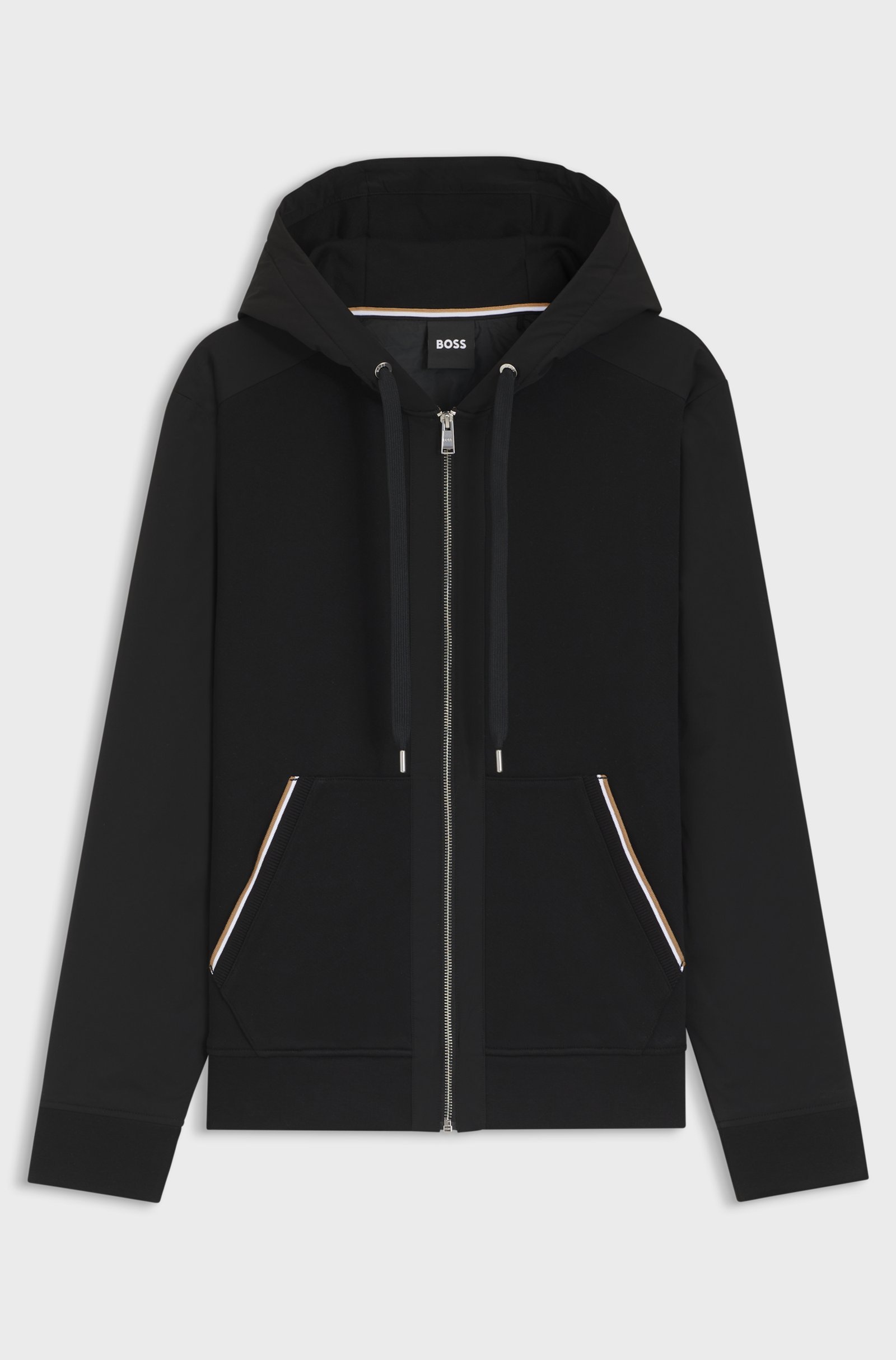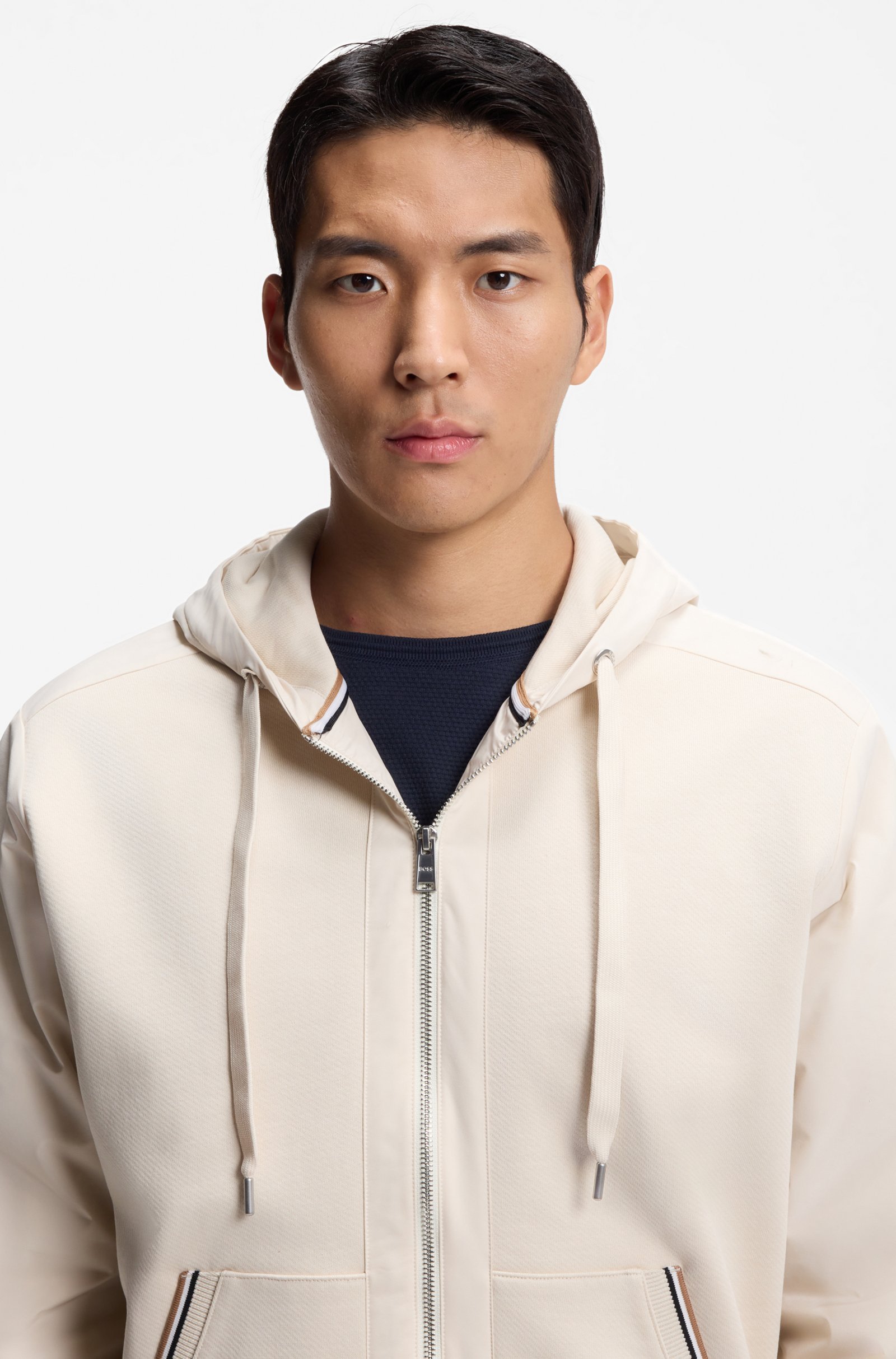 With its signature-stripe pocket trims and soft cotton terry, this wadded BOSS Menswear hoodie is great for casual layering. Regular fit. This product contains at least 80% better raw materials. This piece is made with at least 80% cotton derived from regenerative agriculture. Regenerative agriculture prioritises the preservation and restoration of natural environments, aiming to enhancebiodiversity, maintain water quality, and improve soil health.