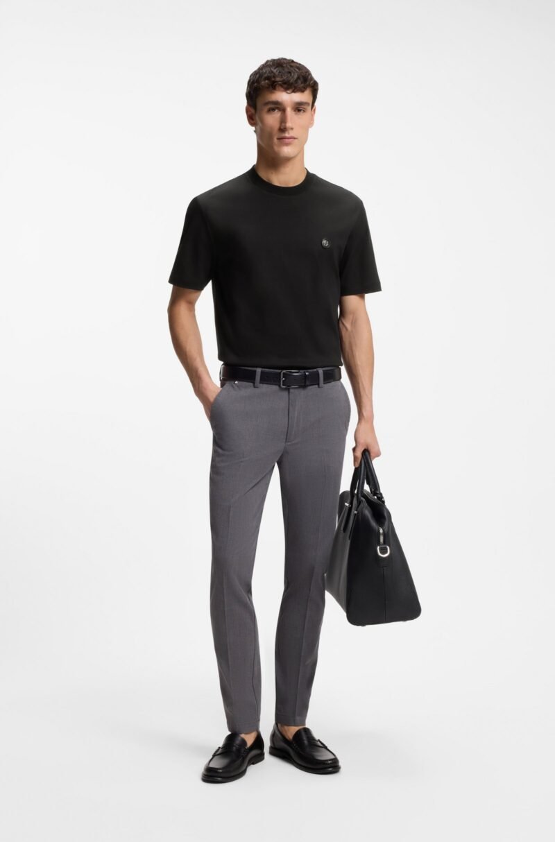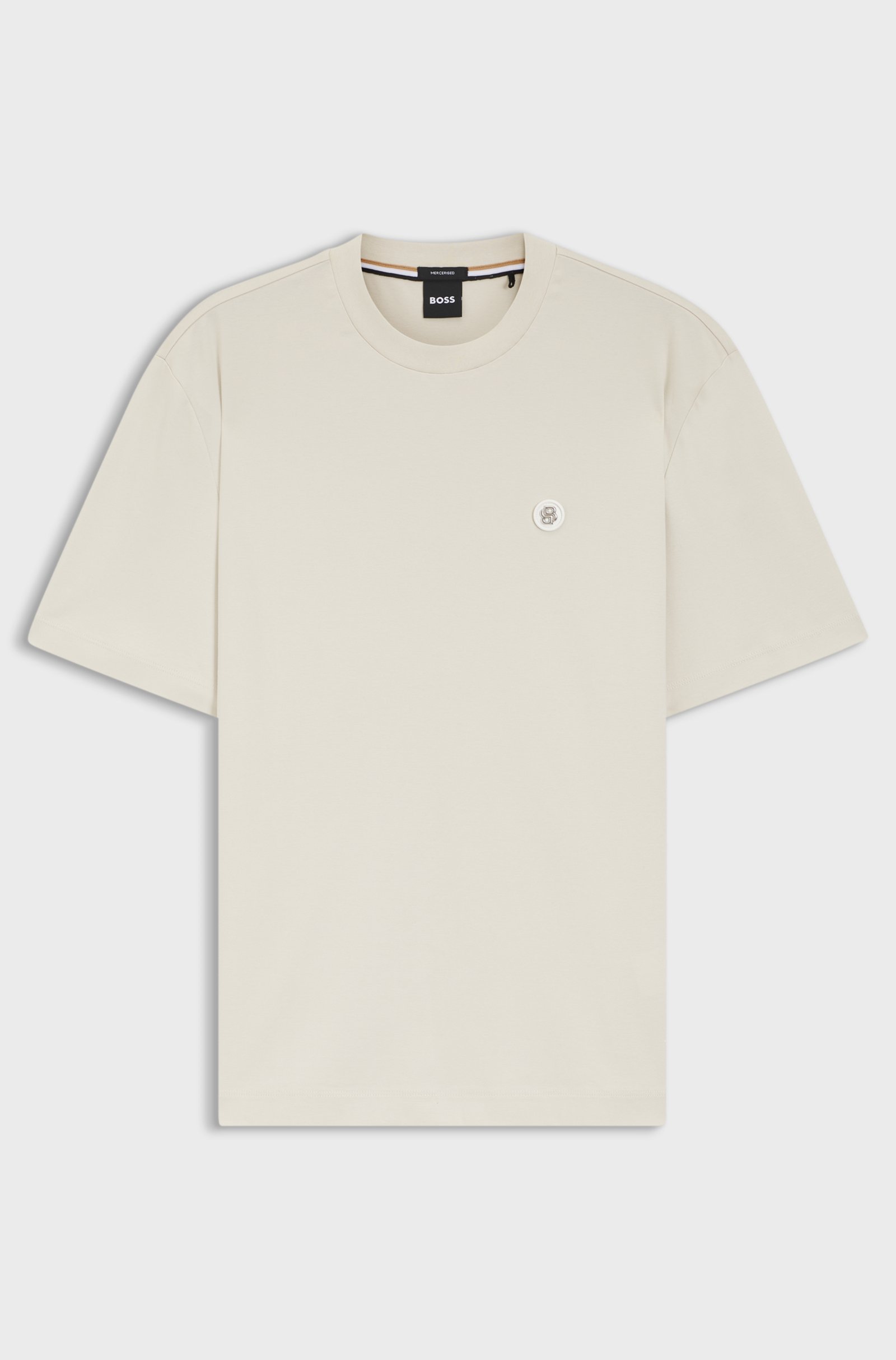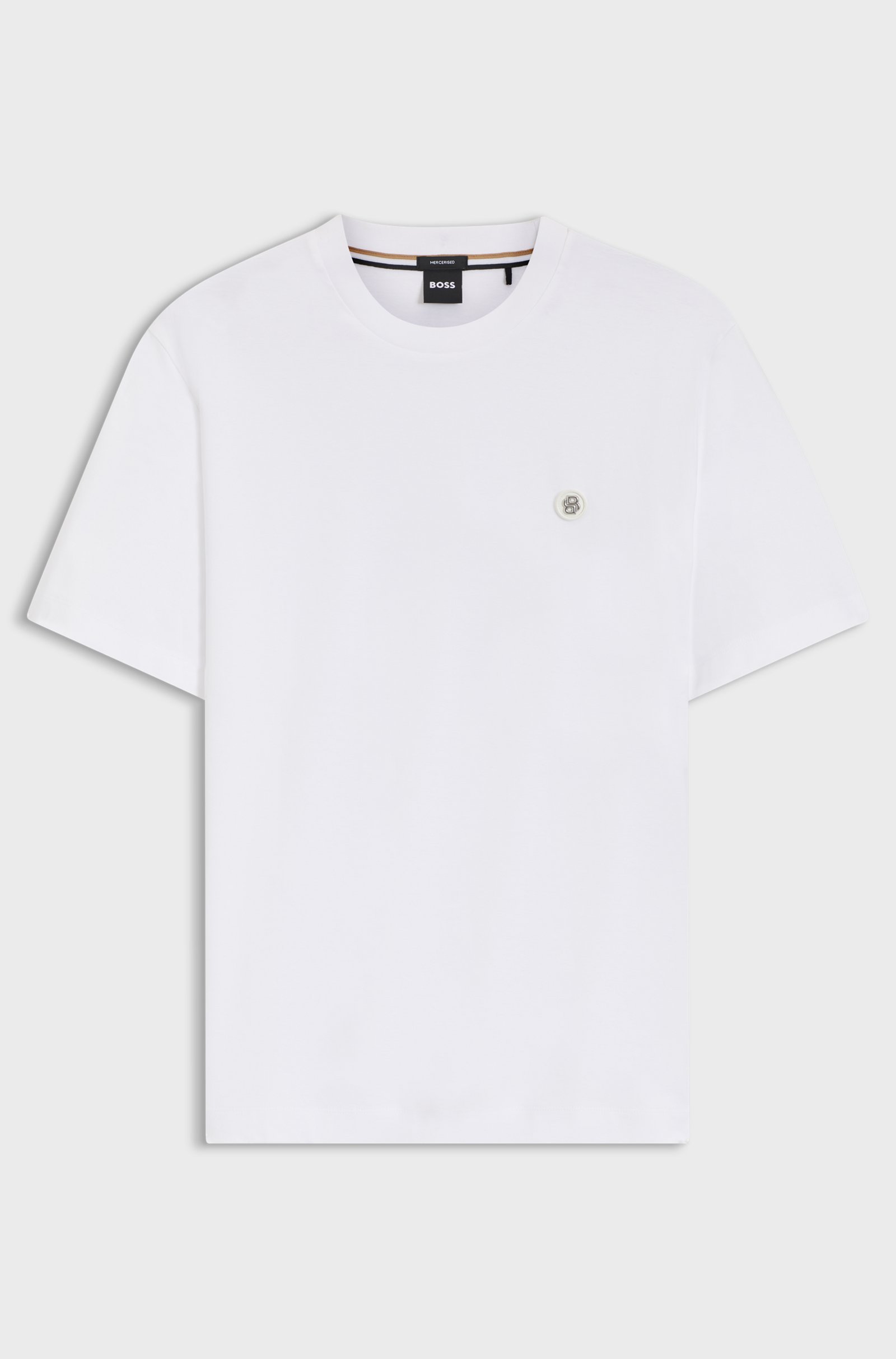 Featuring a metallic Double B monogram badge, this BOSS Menswear T-shirt is crafted in cotton with a super-soft mercerised finish. Regular fit.