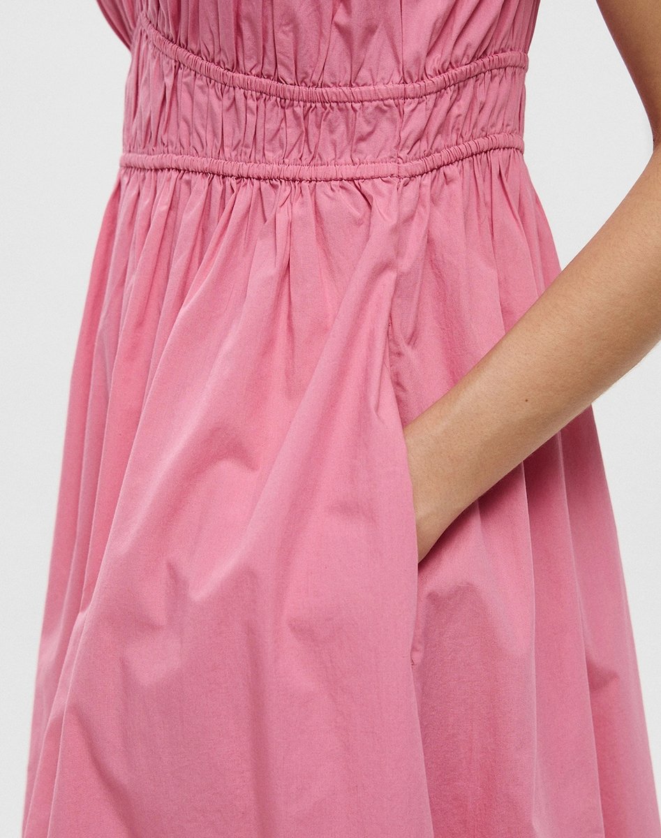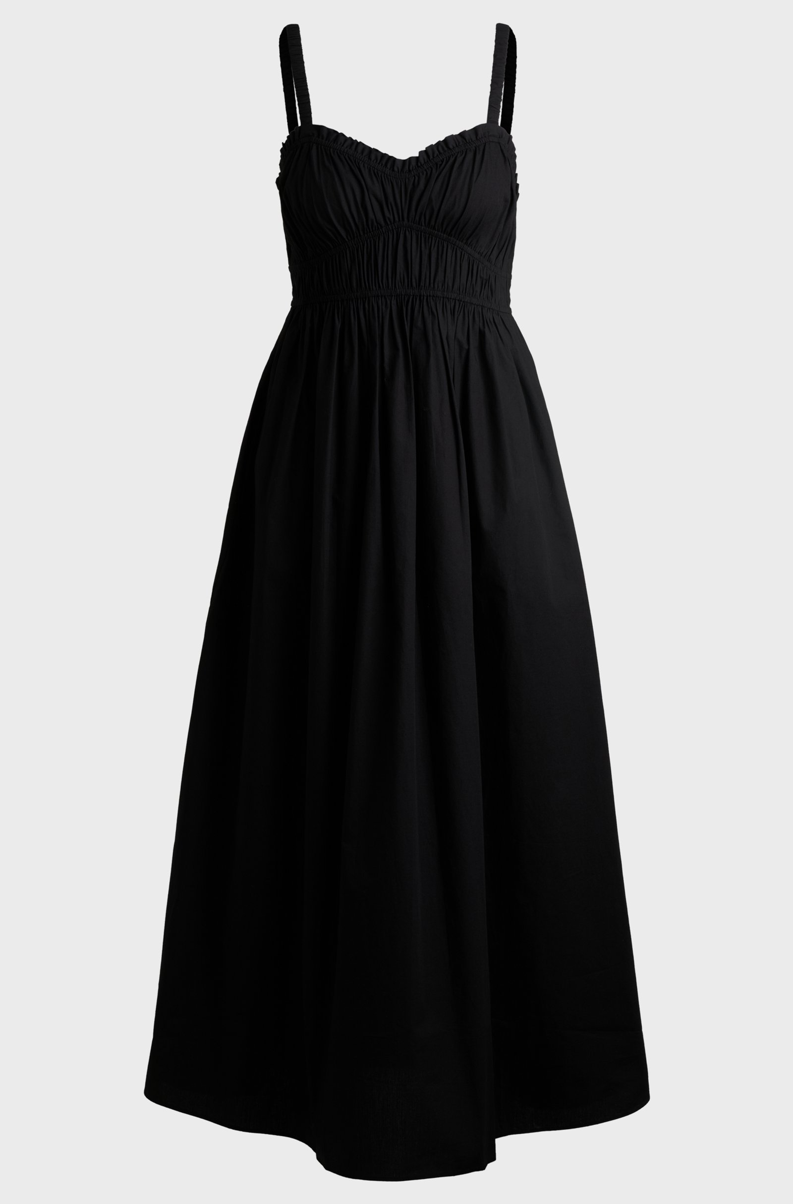 With feminine ruching at the bodice, this BOSS Womenswear dress is an effortless choice for summer days. Soft cotton poplin. Side pockets. This product is partly made with organic cotton. Our organic standards do not allow the use of synthetic fertilisers, pesticides or genetically modified seeds.