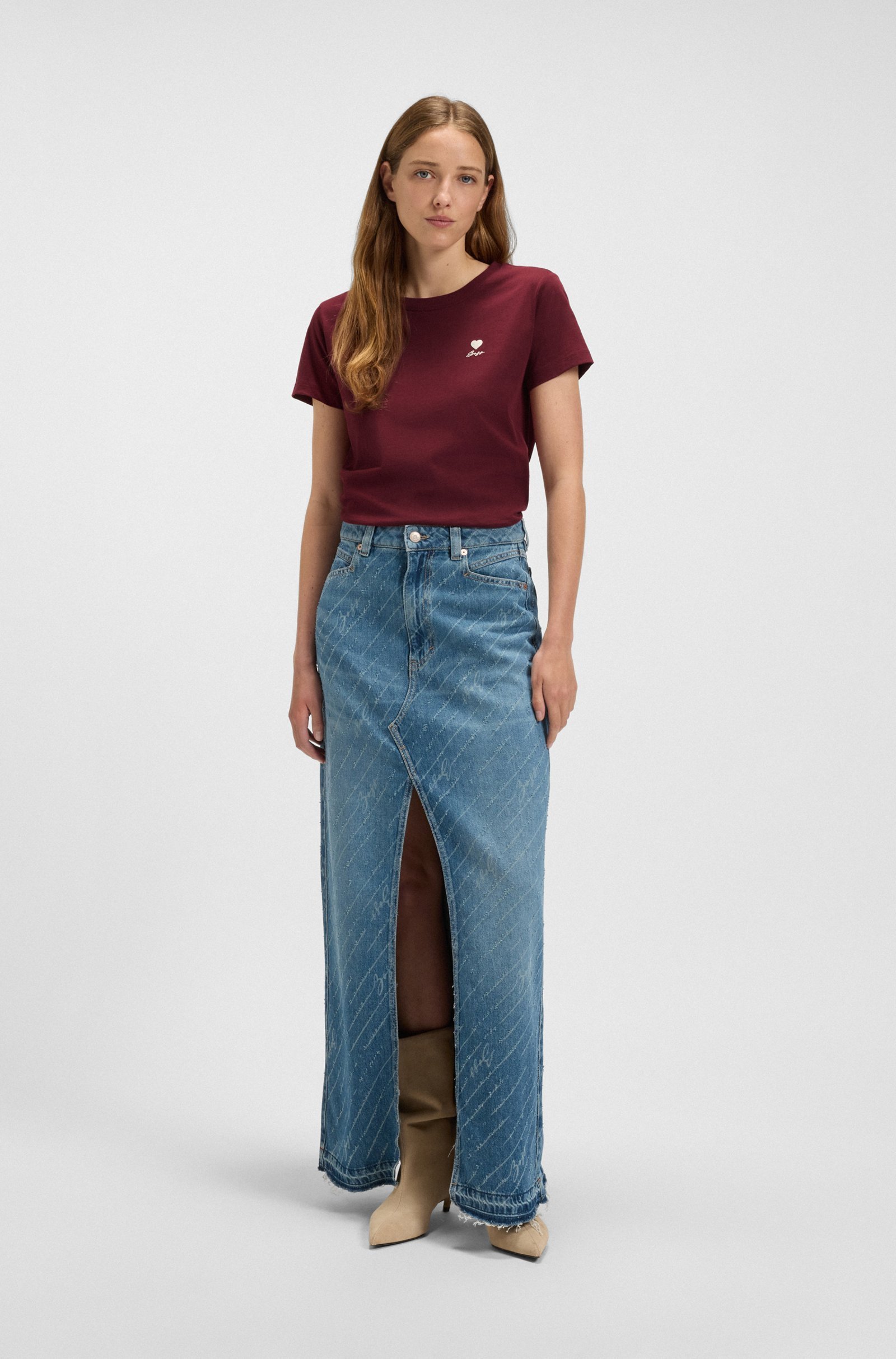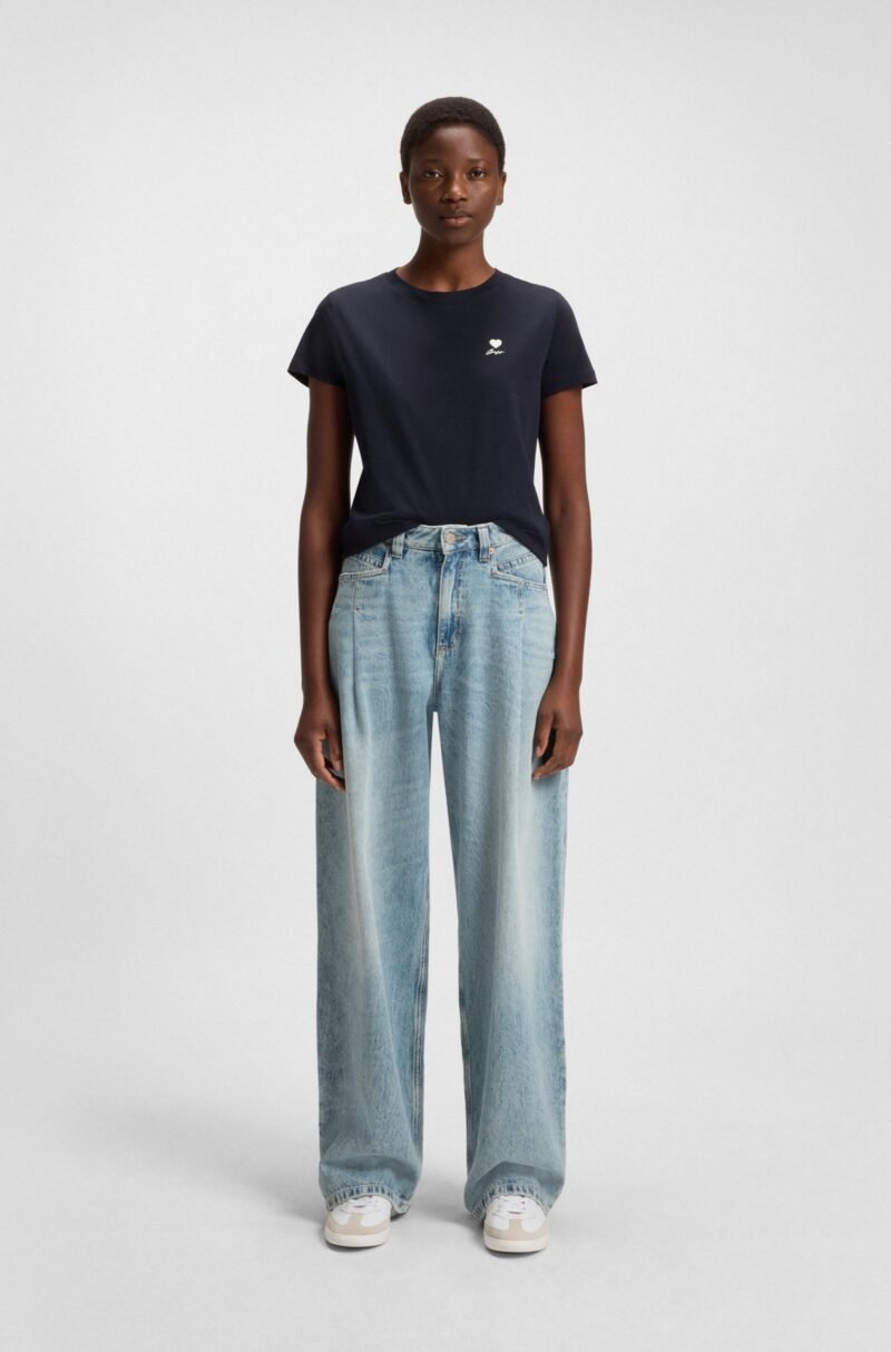 Cut to a straight fit, this BOSS Womenswear T-shirt has fresh artwork to add character to casual looks. Soft cotton jersey. This product contains at least 60% better raw materials. This piece is made with at least 60% cotton derived from regenerative agriculture. Regenerative agriculture prioritizes the preservation and restoration of natural environments, aiming to enhance biodiversity, maintain water quality, and improve soil health.