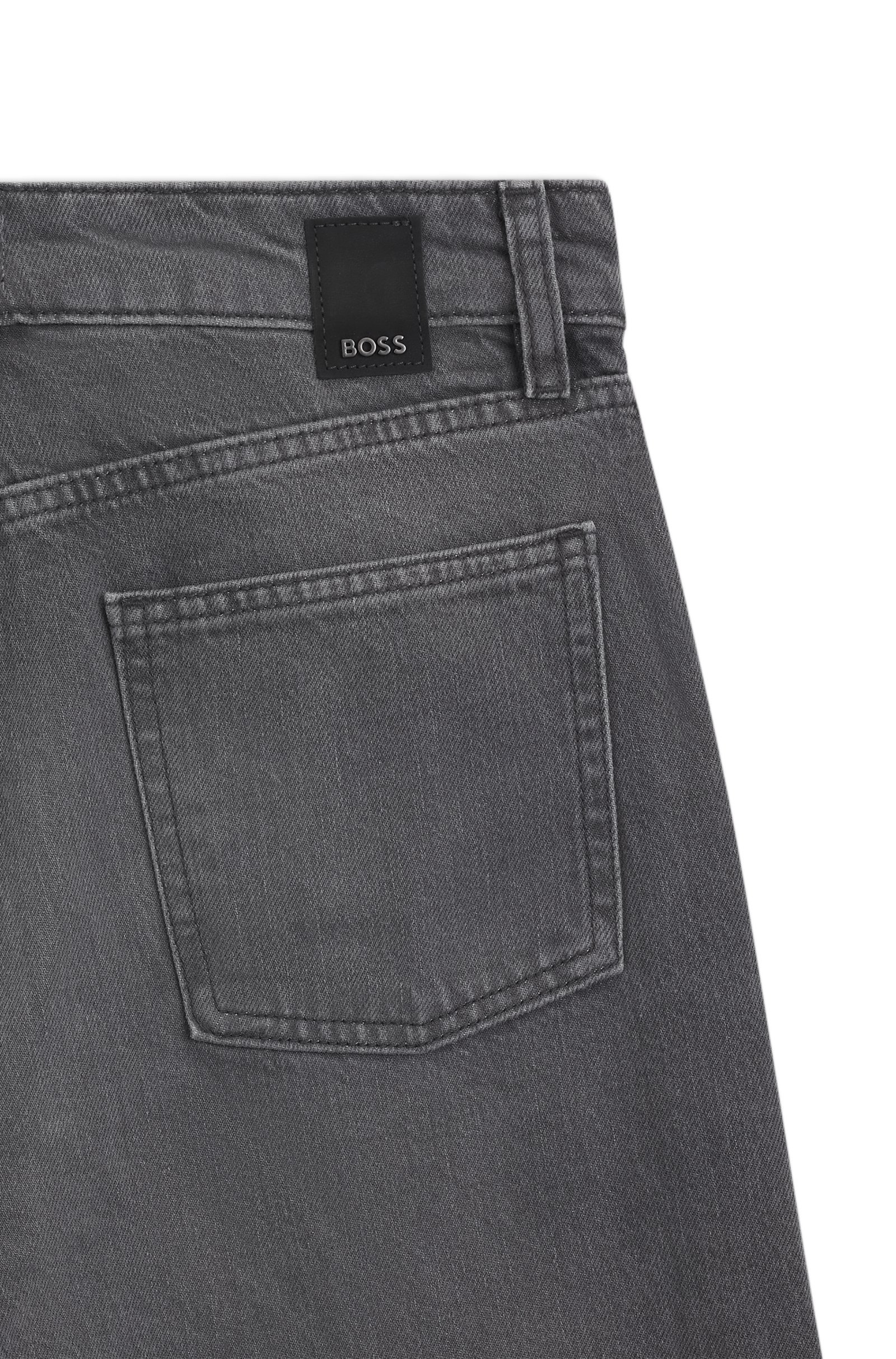 With a wide leg, boyfriend fit and step hem, these BOSS Womenswear jeans create a modern profile. Subtle gray tone. Soft rigid denim.