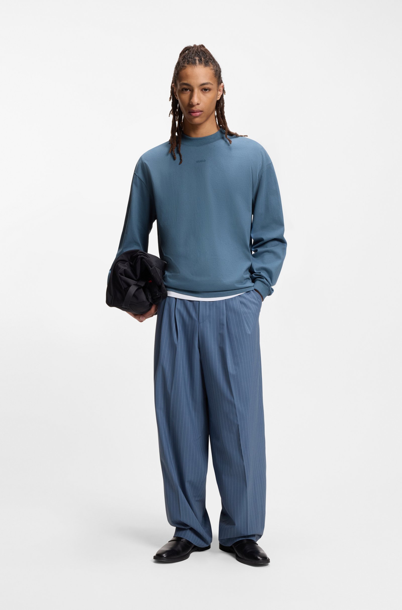 A long-sleeved T-shirt in heavyweight cotton jersey by HUGO Menswear. This relaxed-fit top is printed with a contrast logo on the chest.