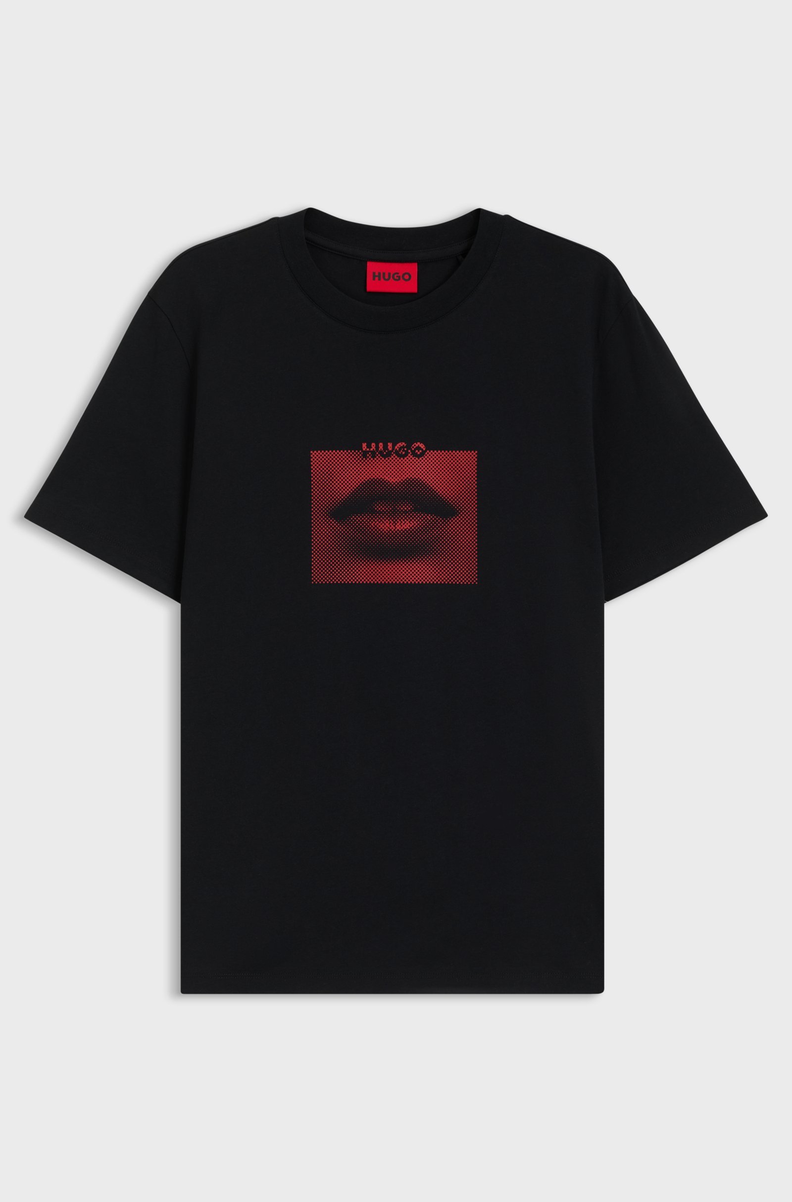 With a statement lip graphic and split logo, this HUGO Menswear T-shirt is a fresh choice. Cut to a straight fit in soft cotton jersey.