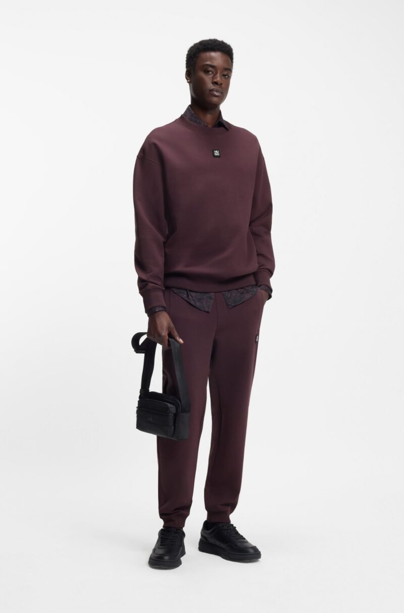 A minimalist sweatshirt by HUGO Menswear. Trimmed with a stacked-logo badge, this relaxed-fit layer comes in a soft cotton blend with stretch.