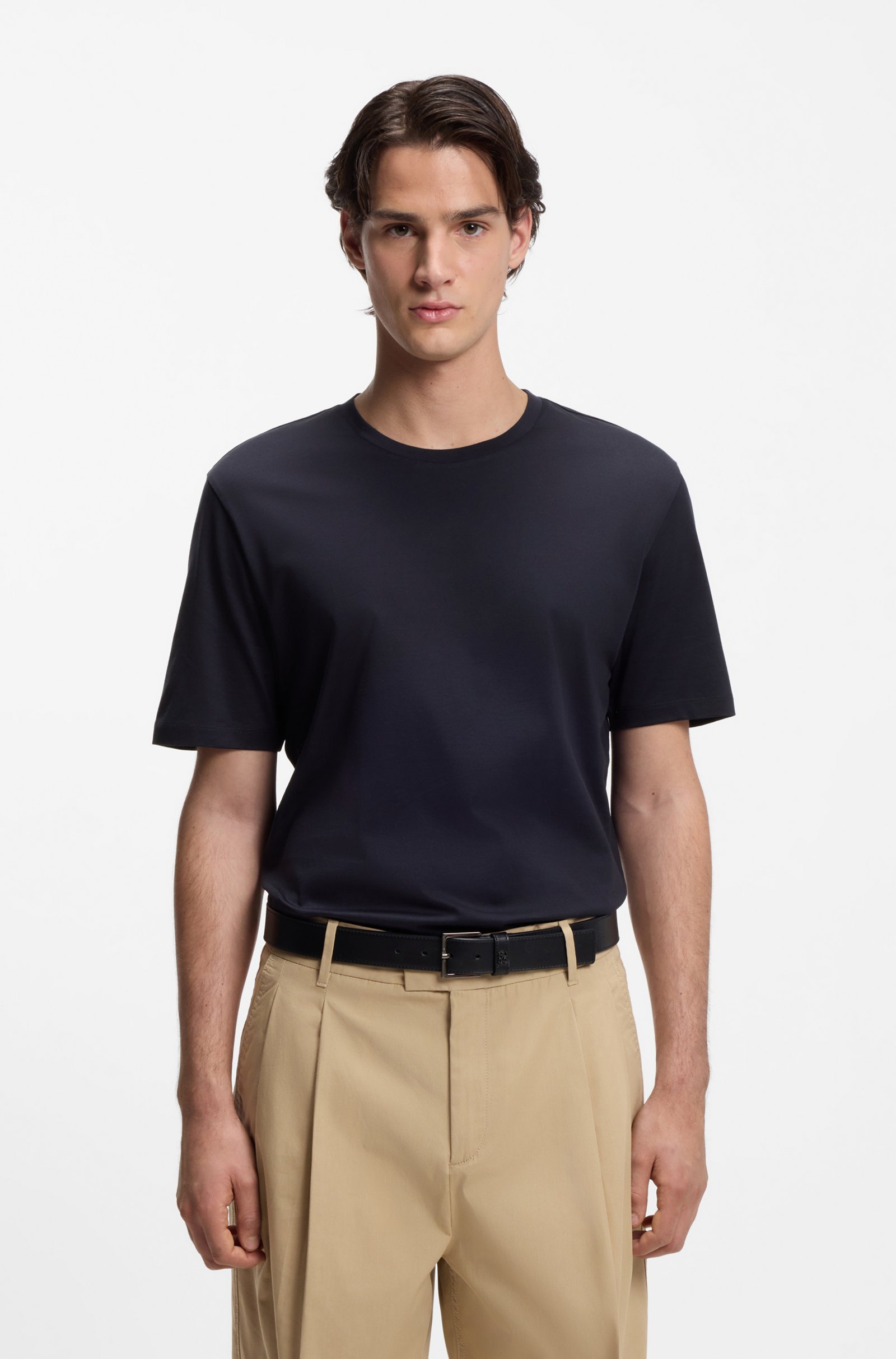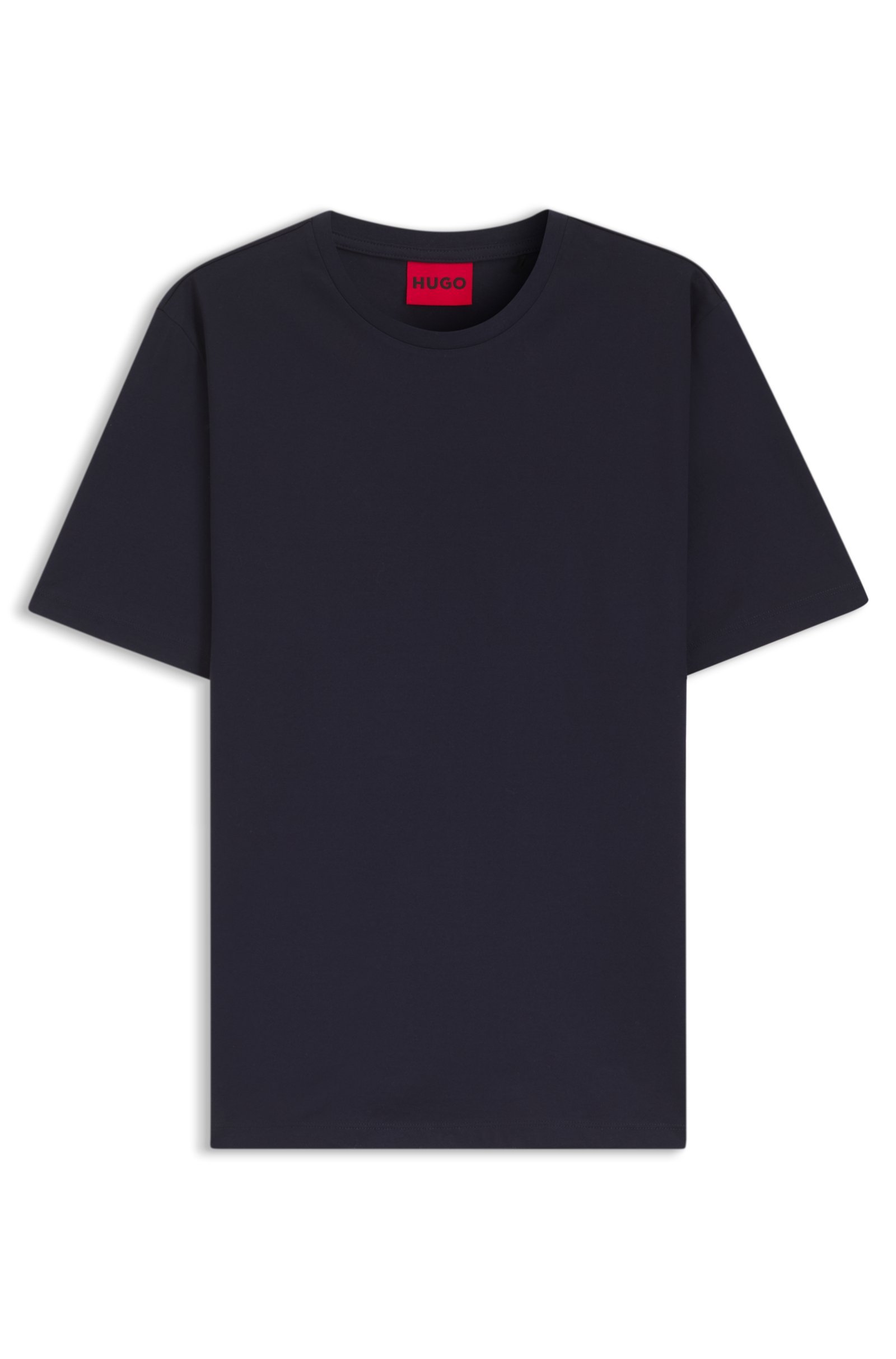 With tonal logo tape, this slim-fitting stretch HUGO Menswear T-shirt is a true all-rounder. Rich in mercerised cotton for extra softness.