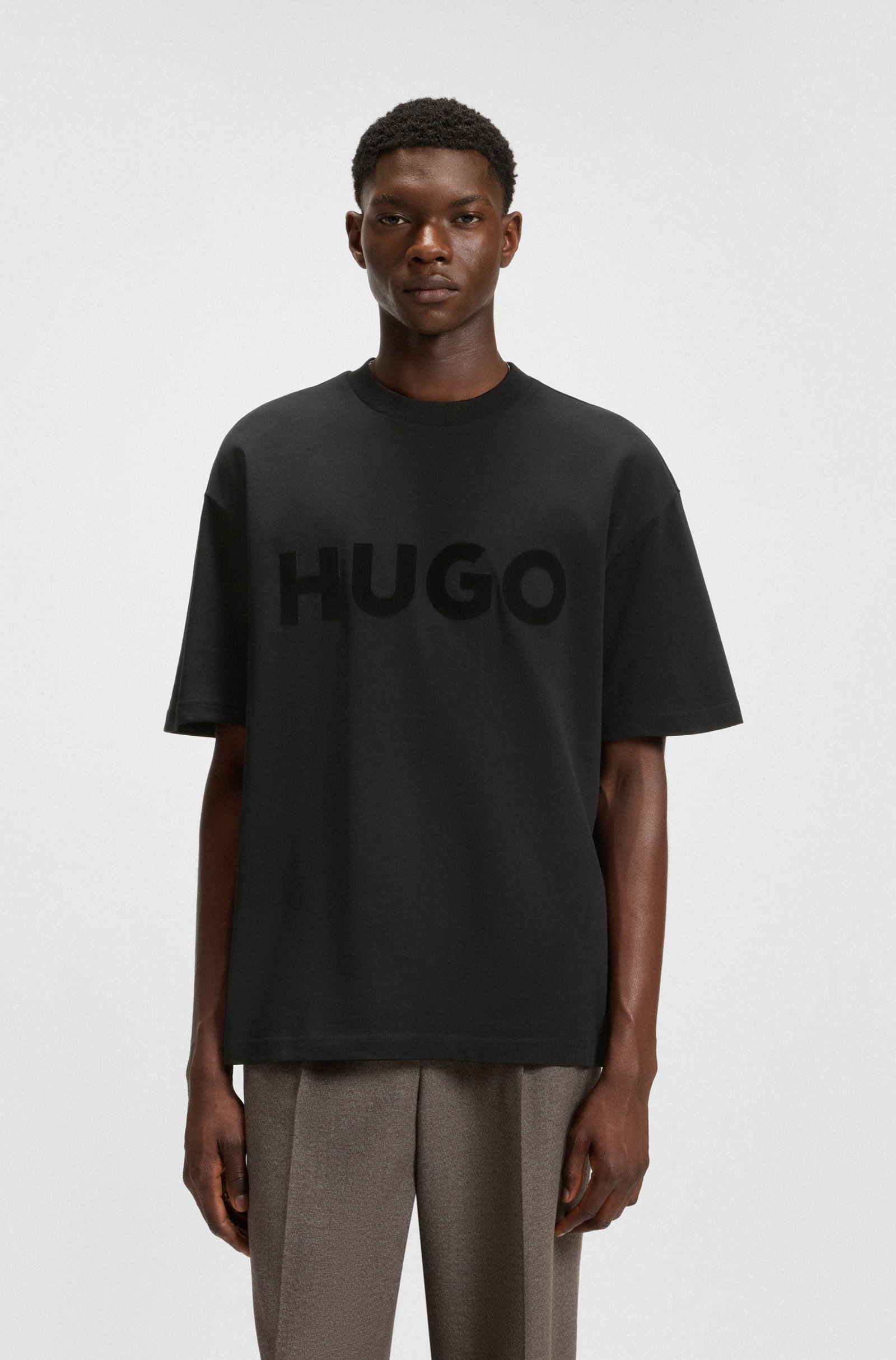 Get comfy with this oversized jersey T-shirt by HUGO Menswear. Plush, weighty feel. Sleek decorative reflective logo on the chest. Crew neckline.