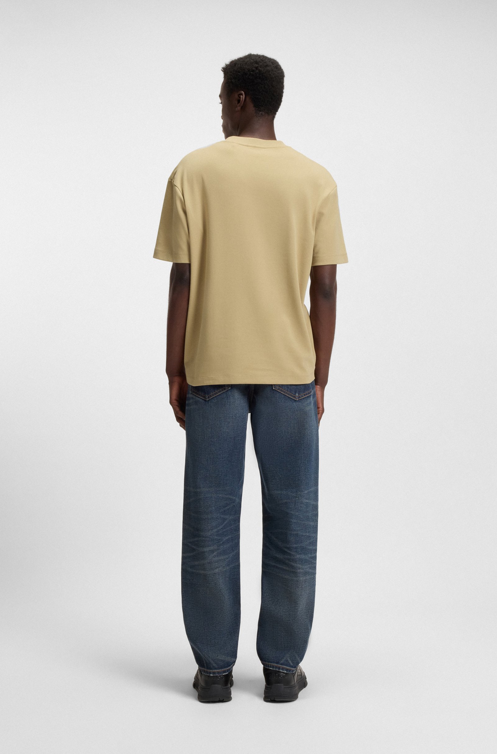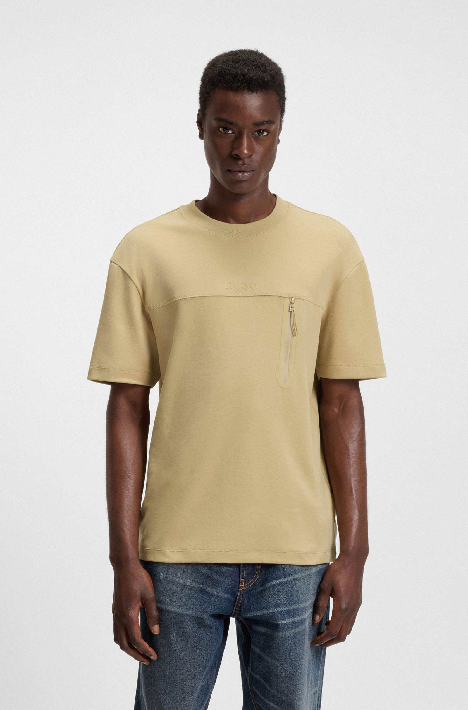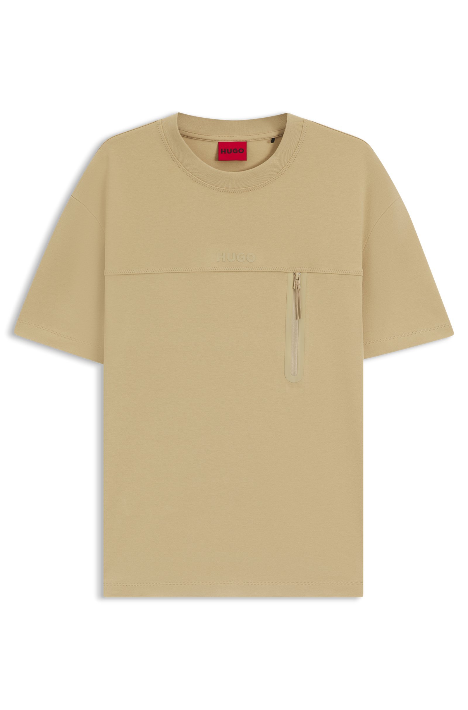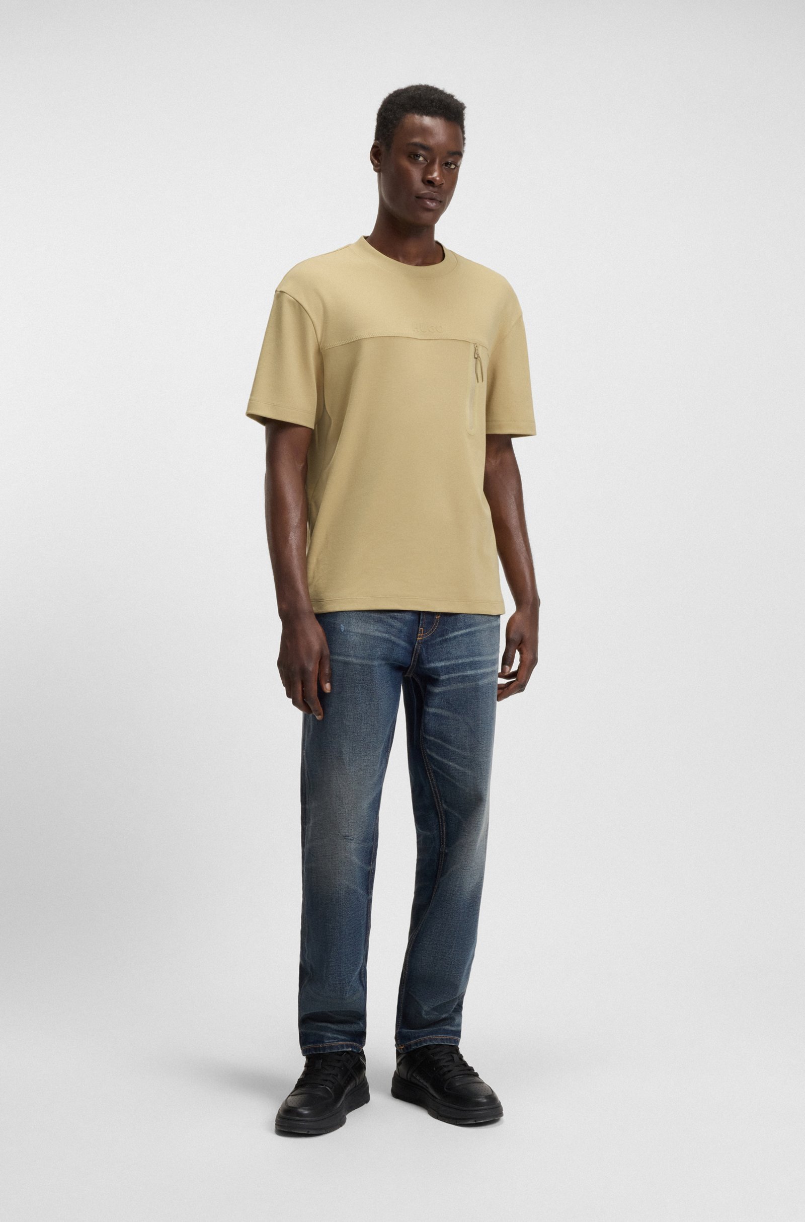 With its decorative reflective details and vertical zip, this relaxed-fit HUGO Menswear T-shirt is a fresh way to do casuals. Stretch-cotton.