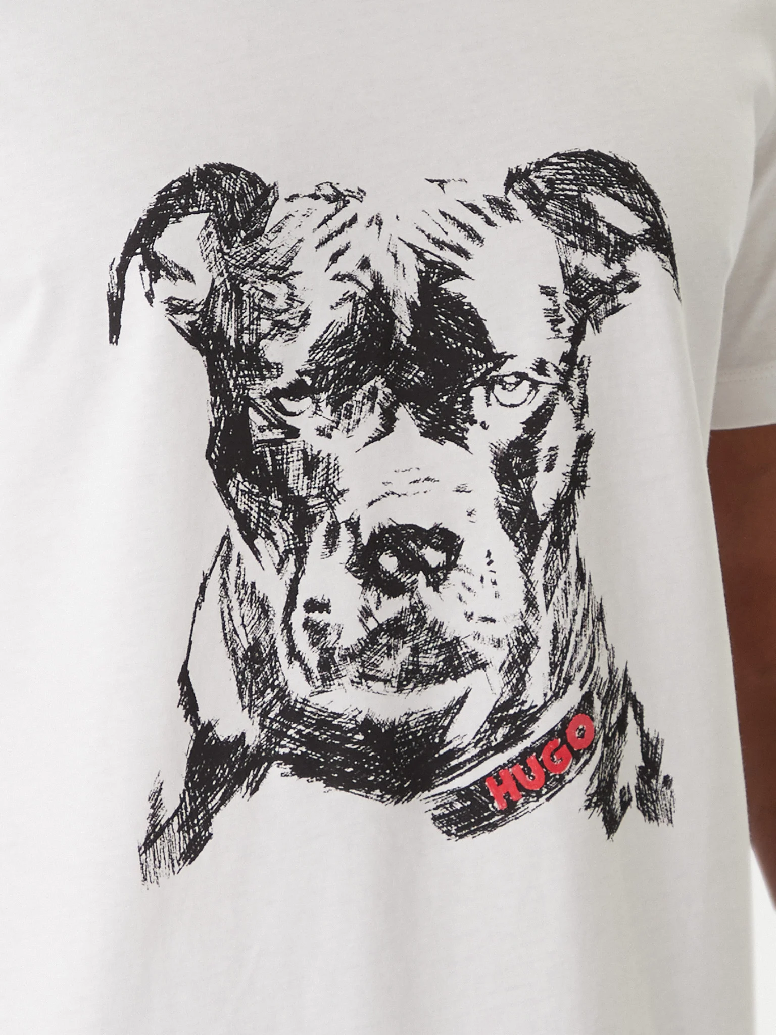 Add impact to everyday looks with the creative dog artwork of this regular-fit HUGO Menswear T-shirt. Crafted in breathable cotton jersey.