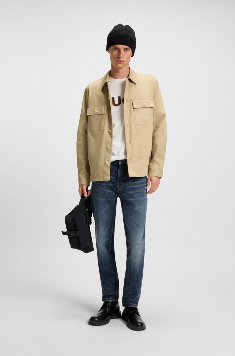 Layer up in style with this HUGO Menswear shirt. Cut to a roomy fit in rich cotton gabardine with chest pockets and subtle branding.
