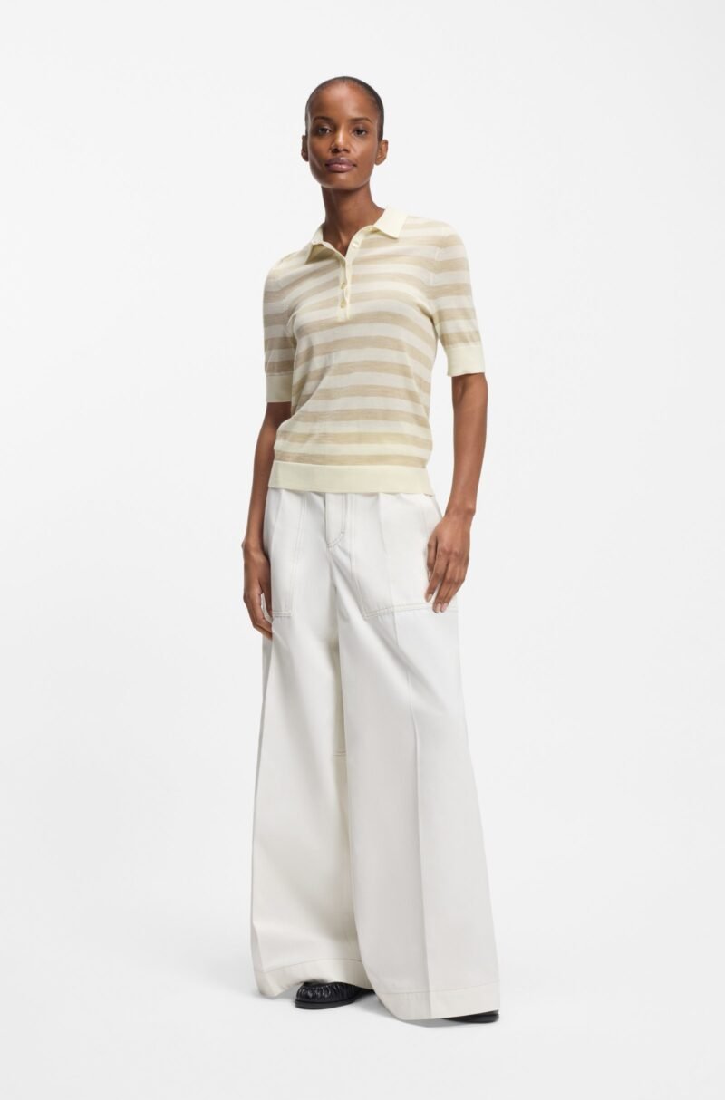 A refined everyday option, this BOSS Womenswear sweater is knitted in anti-pilling merino wool for natural moisture management and temperature control. Regular fit. This product contains at least 80% better raw materials. This product is made with responsibly sourced wool. For us, responsibly sourced means mulesing free, and meeting the standards of the Five Freedoms of animal welfare.