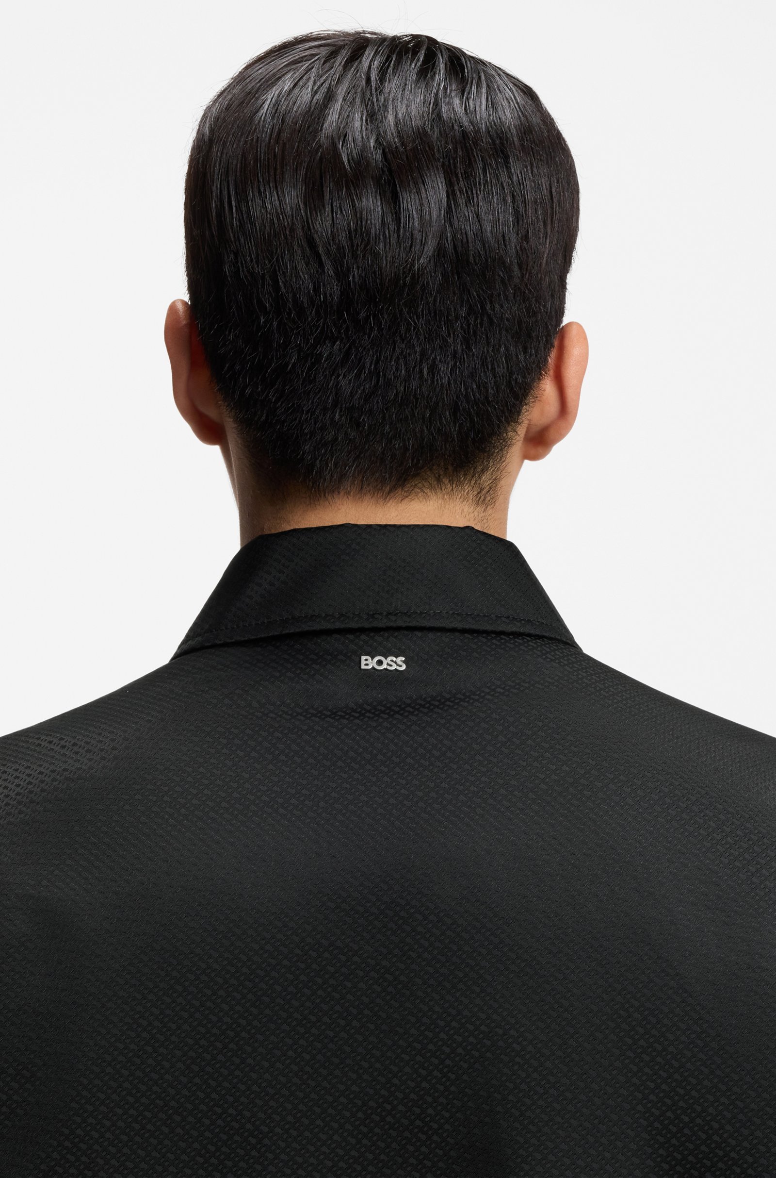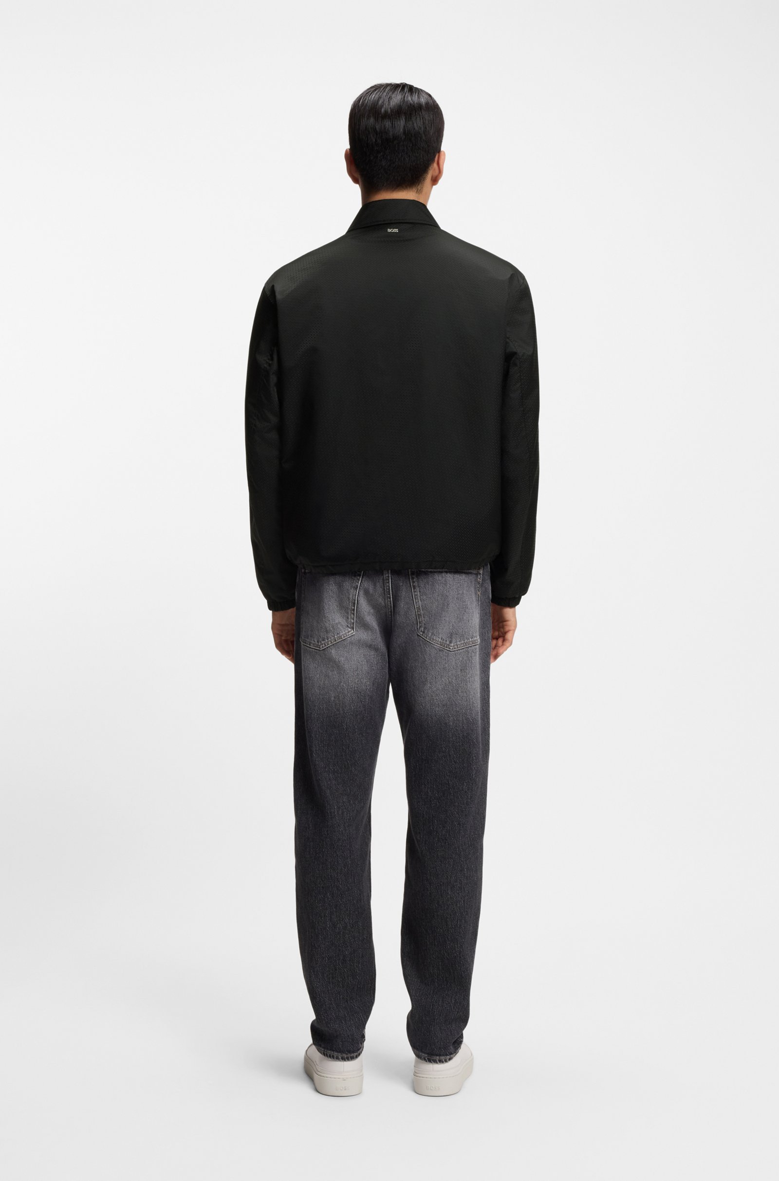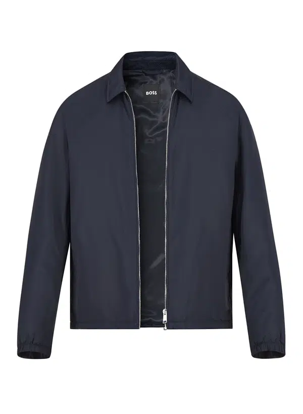 Stay dry in style with the repellent fabric and mini monograms of this regular BOSS Menswear jacket. Elasticated hem and cuffs for comfort.