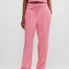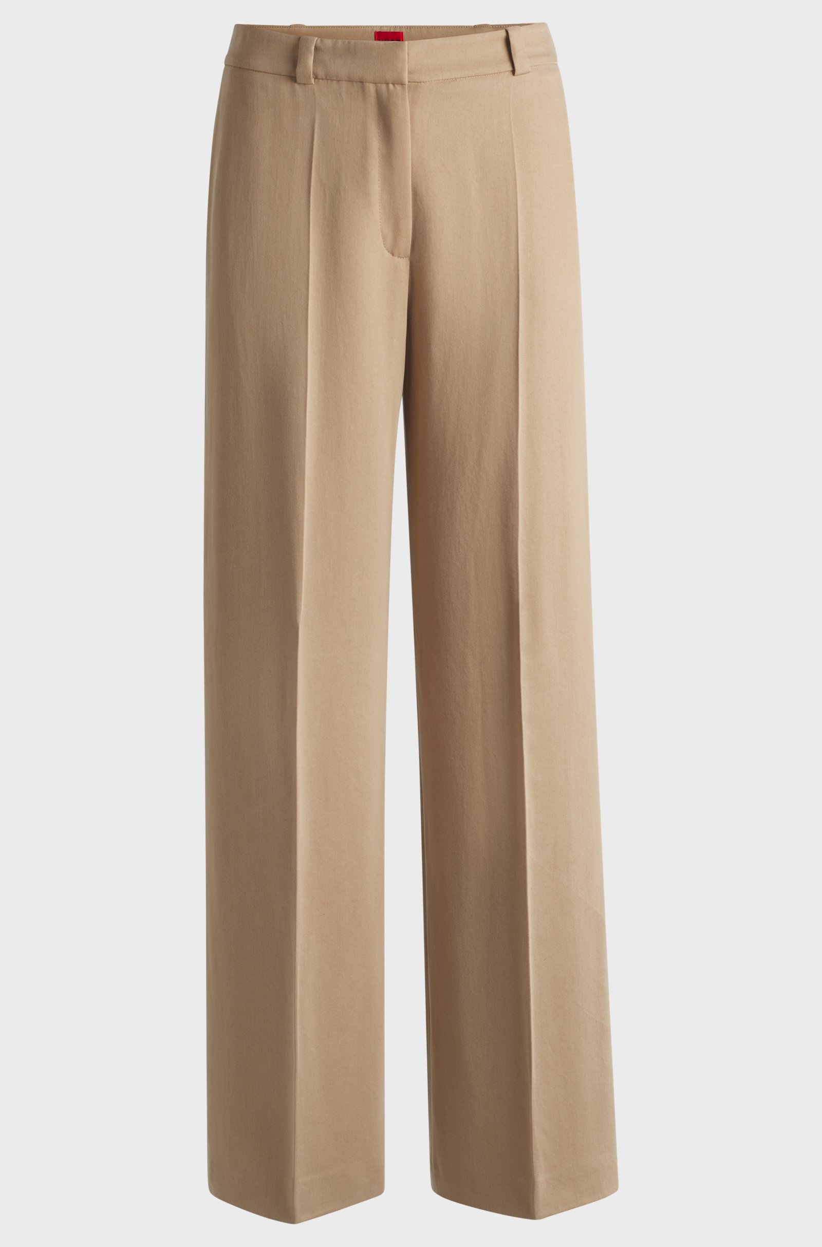 In drapey twill for a flattering effect, these regular-fit HUGO Womenswear trousers are cut with a wide leg. The waistband has a mid rise. This product is made with cellulose fibres, derived from natural raw wood material and sourced from responsibly managed forests. We cooperate with external organisations to ensure respectful treatment of virgin and endangered forests.