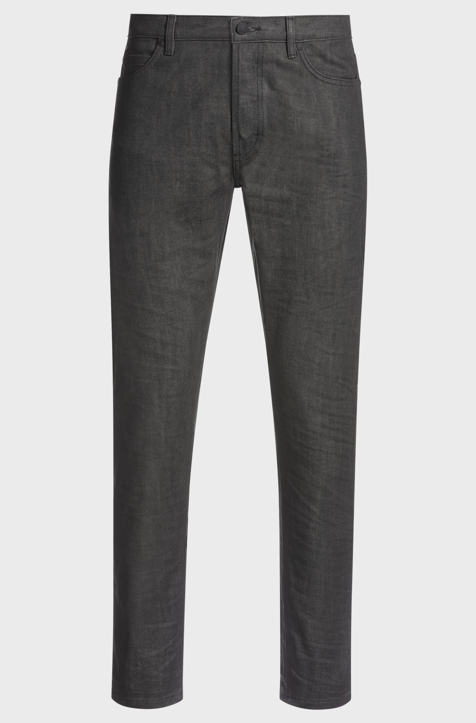 Delivered in a versatile shade of grey, these men’s HUGO x RB jeans come in comfortable stretch denim. Leather patch with special logo. Button fly. Celebrate the thrill of motorsports with this unique product from the high-octane collaboration between HUGO and the Visa Cash App Racing Bulls Formula One™ Team