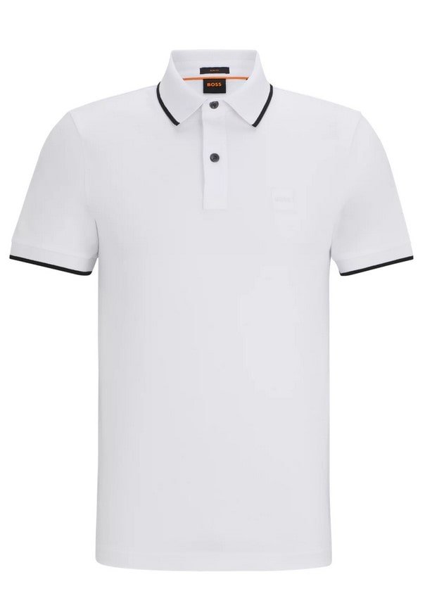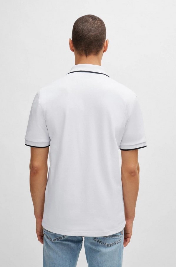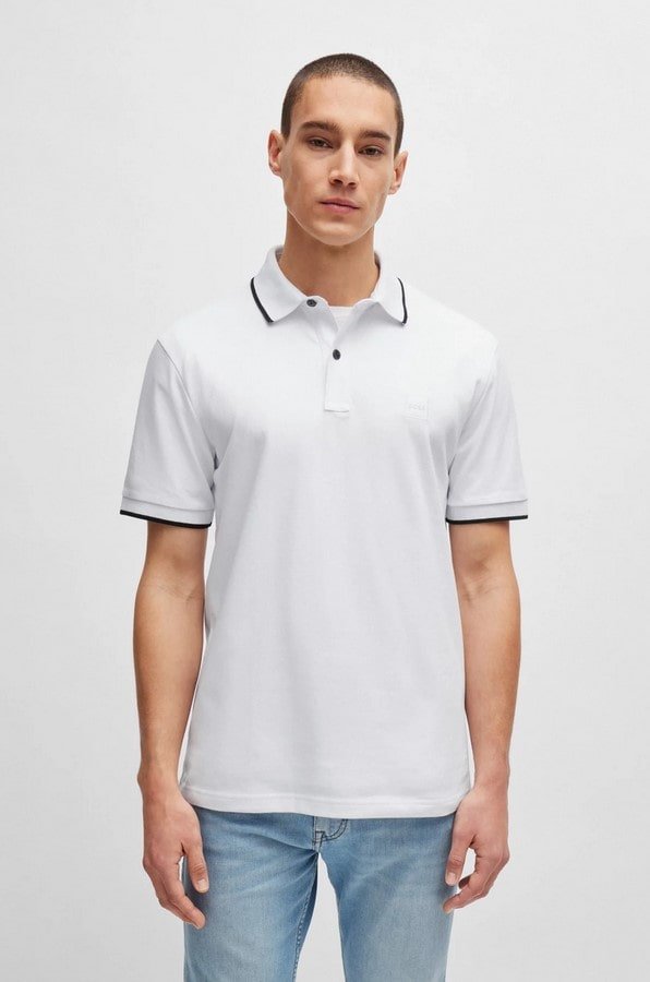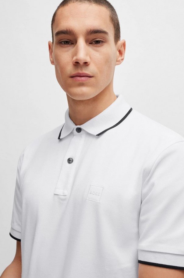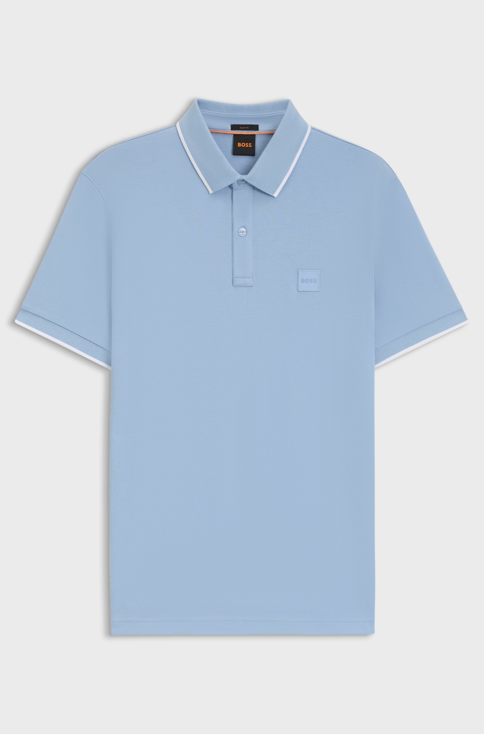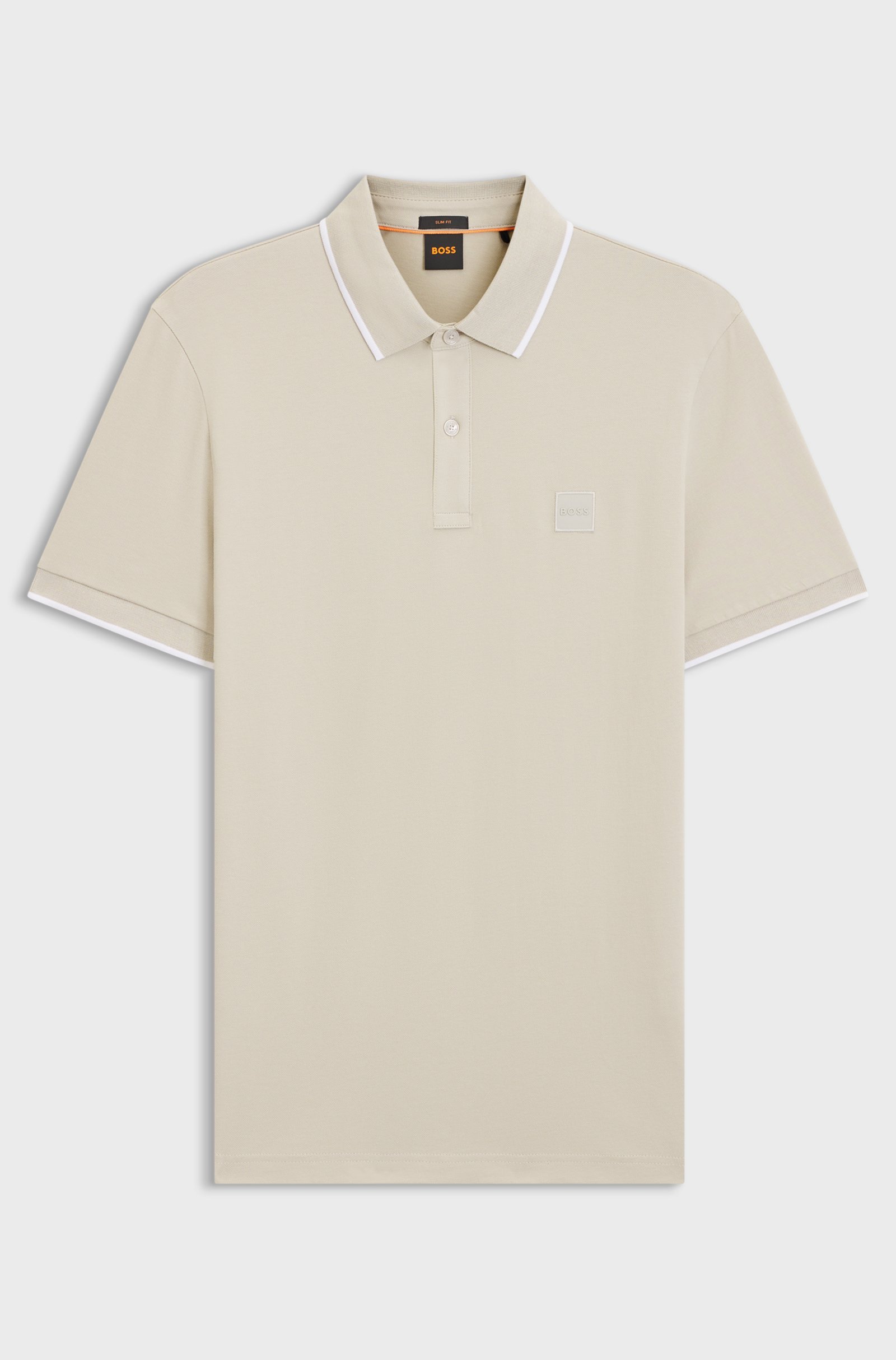 An effortless polo shirt by BOSS Menswear, featuring a logo patch and contrast tipping. Slim fit. Crafted in washed stretch-cotton piqué for softness.