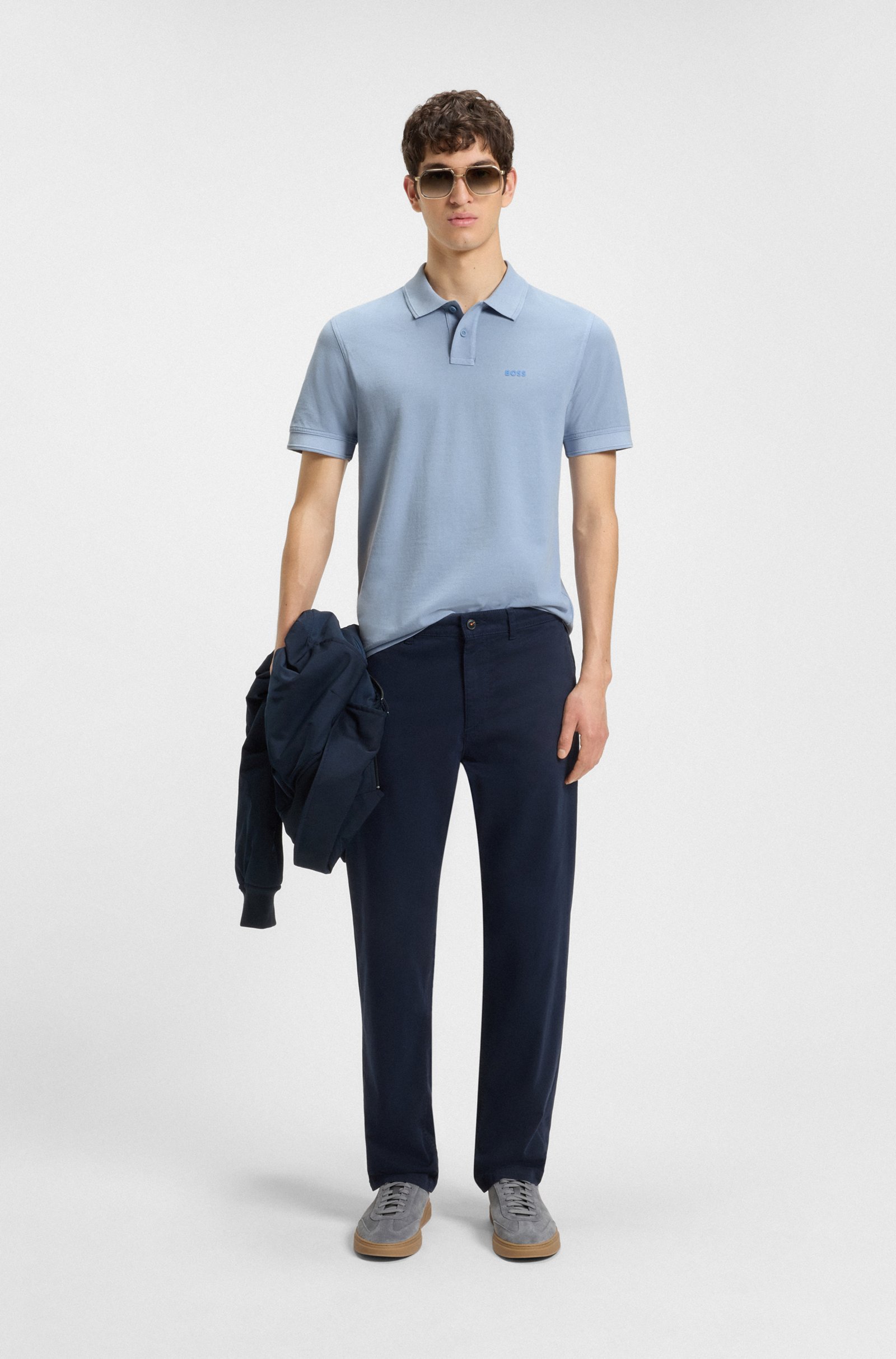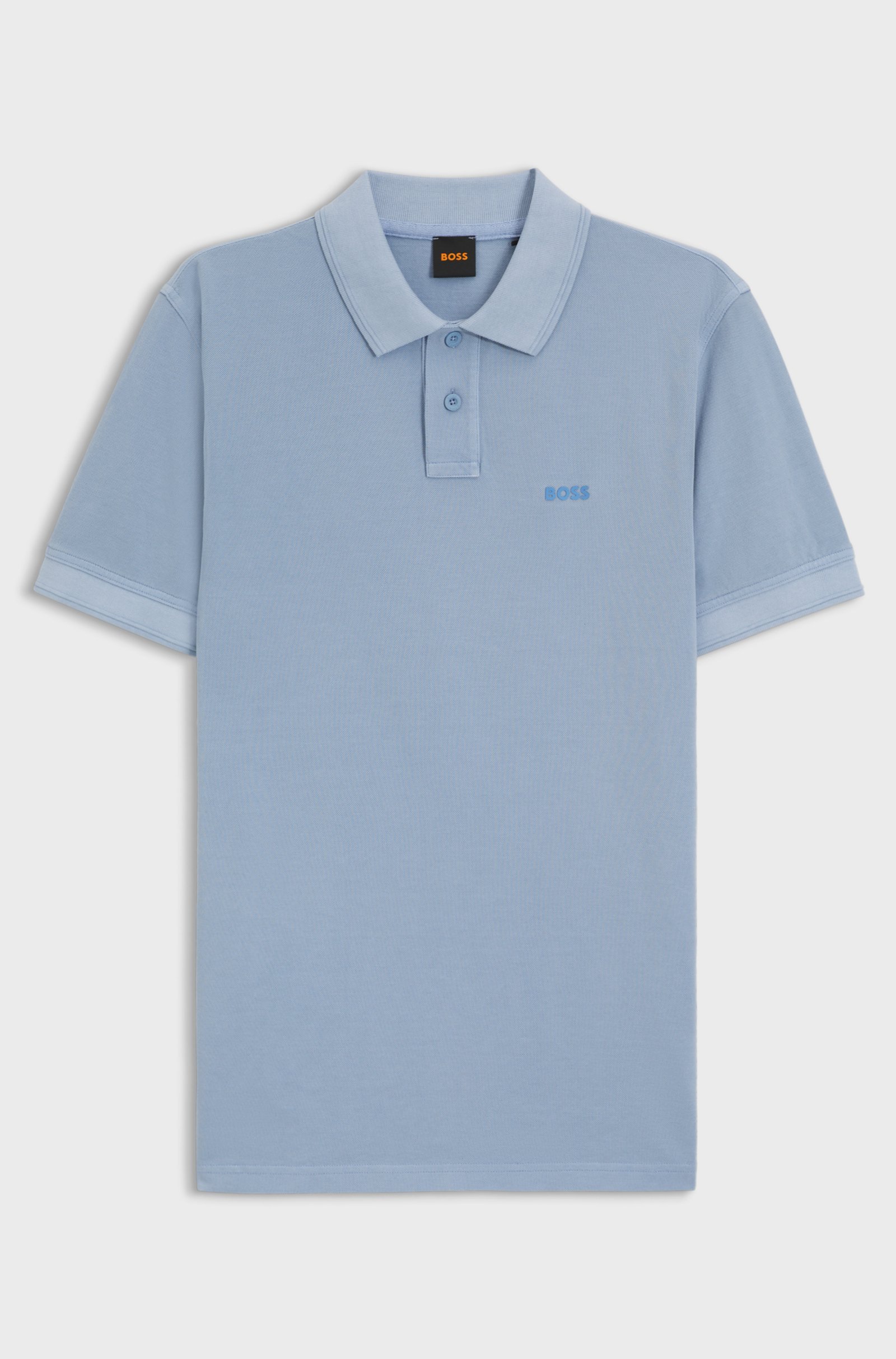 A regular-fit polo shirt by BOSS in washed cotton piqué. It features a layered logo print and structured stripes at the collar and cuffs.