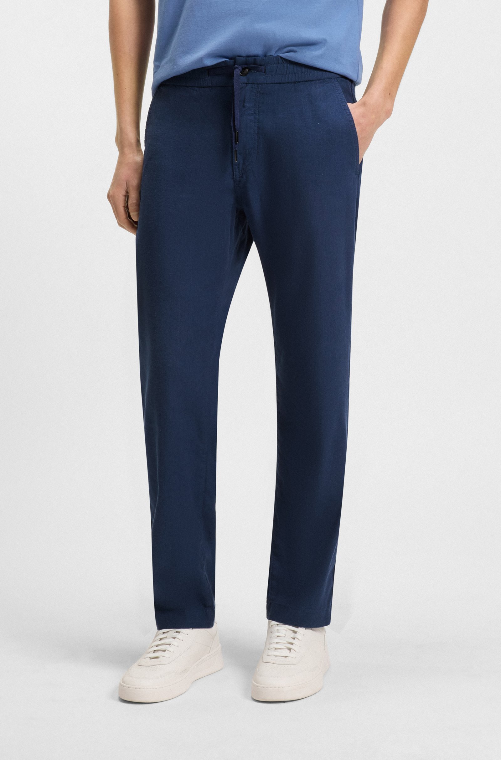 Easy to style, these BOSS Menswear trousers are crafted in a comfort-stretch linen blend. Their straight fit and drawstring waist create a casual silhouette.