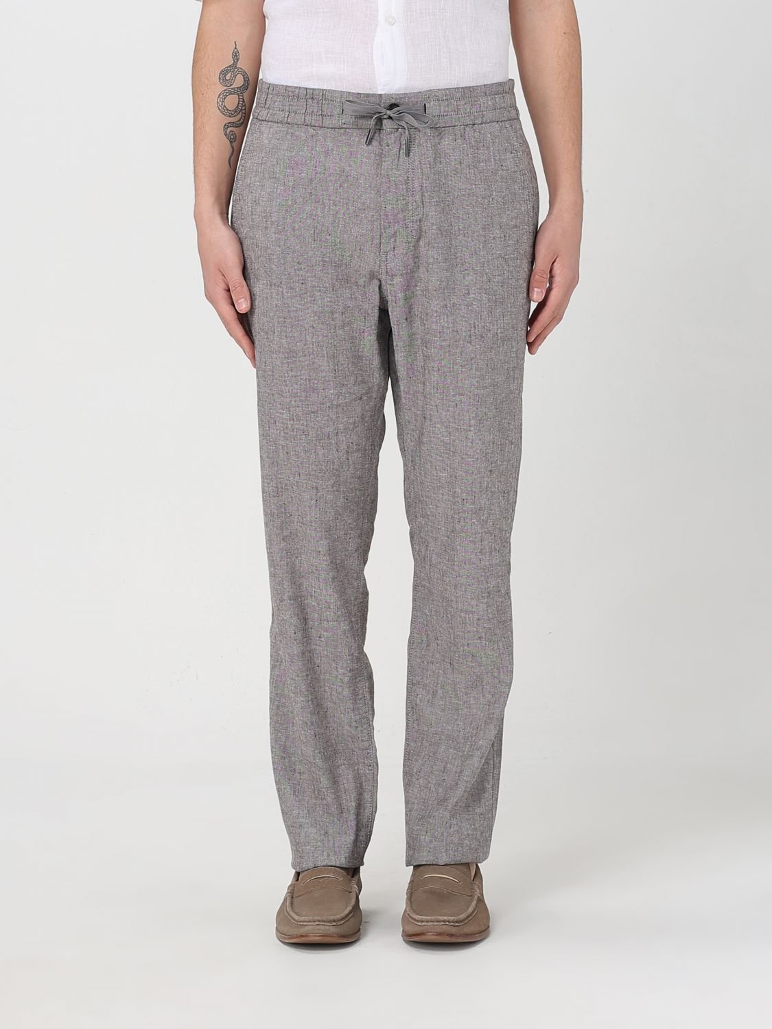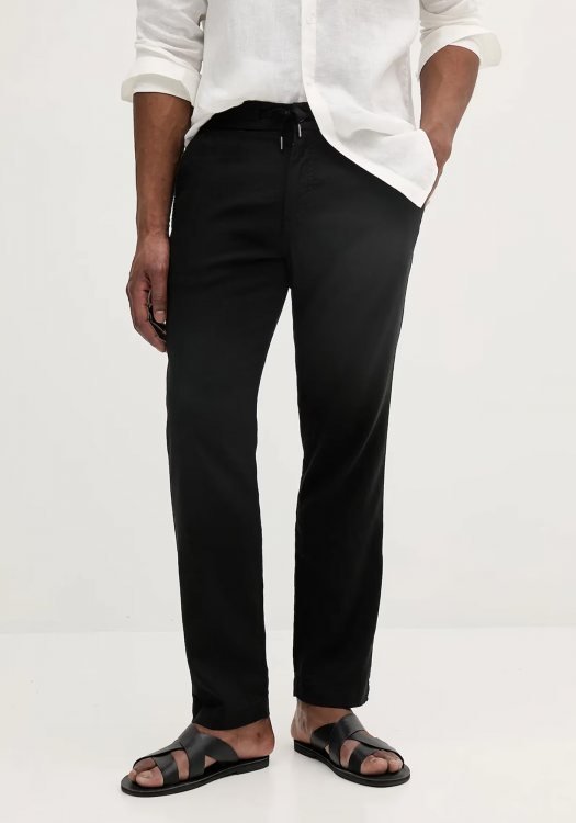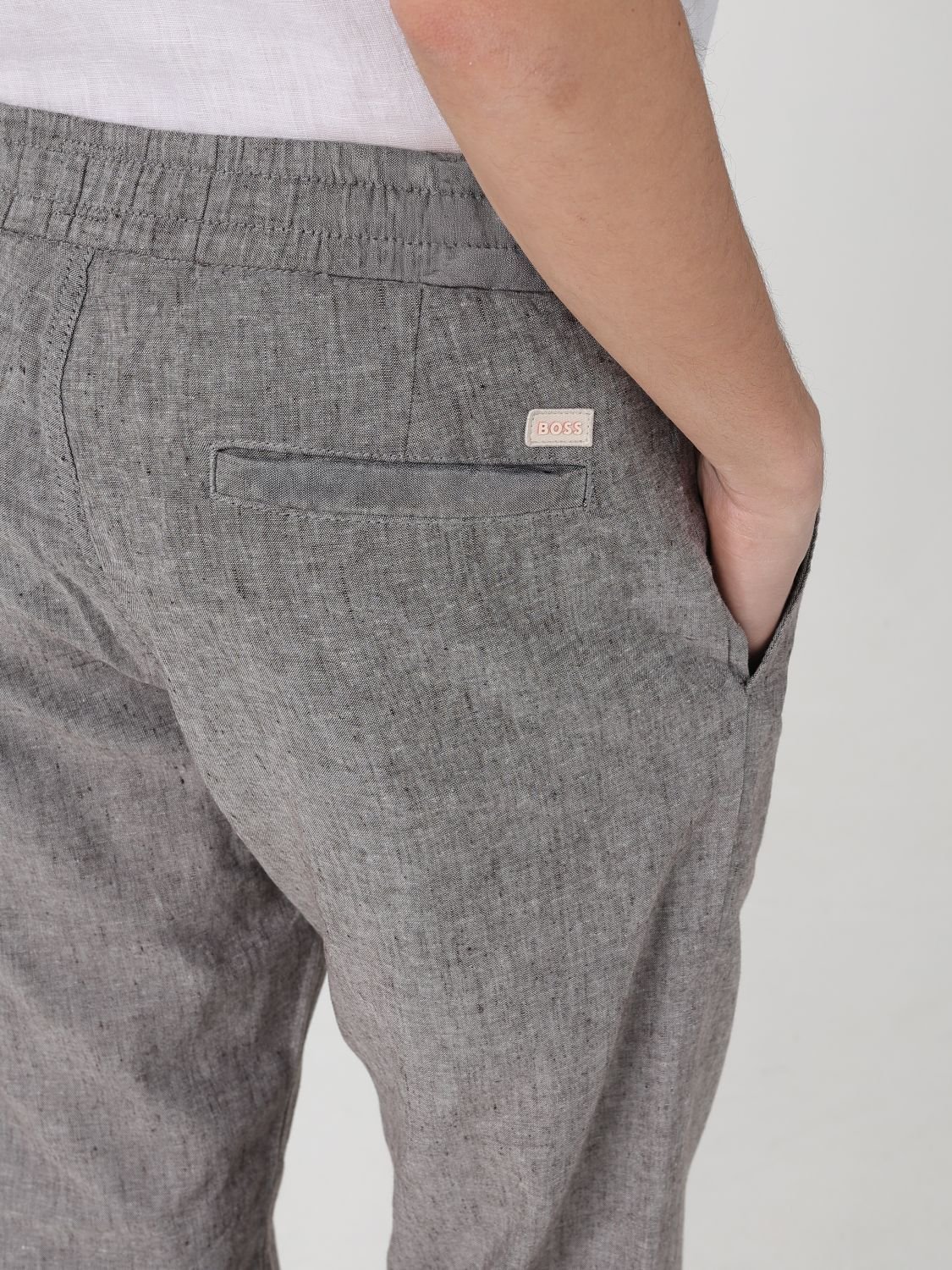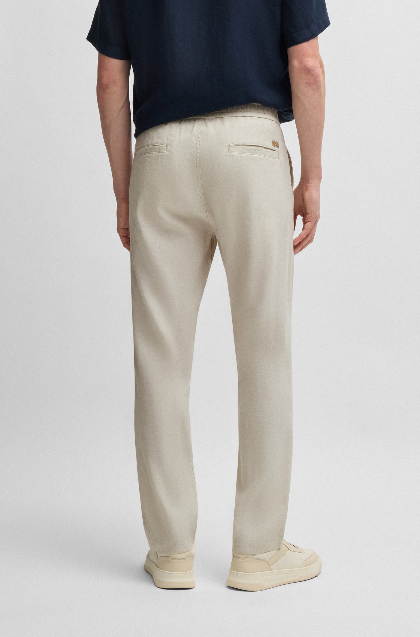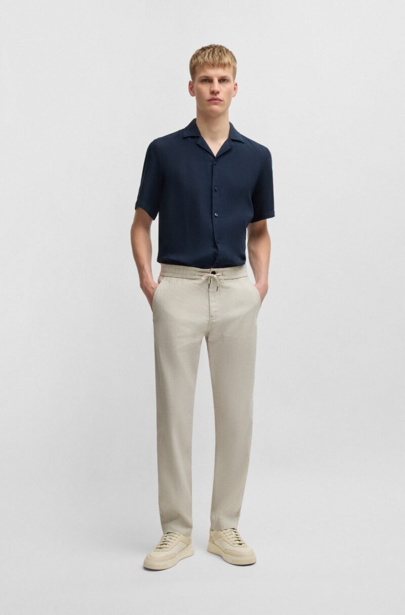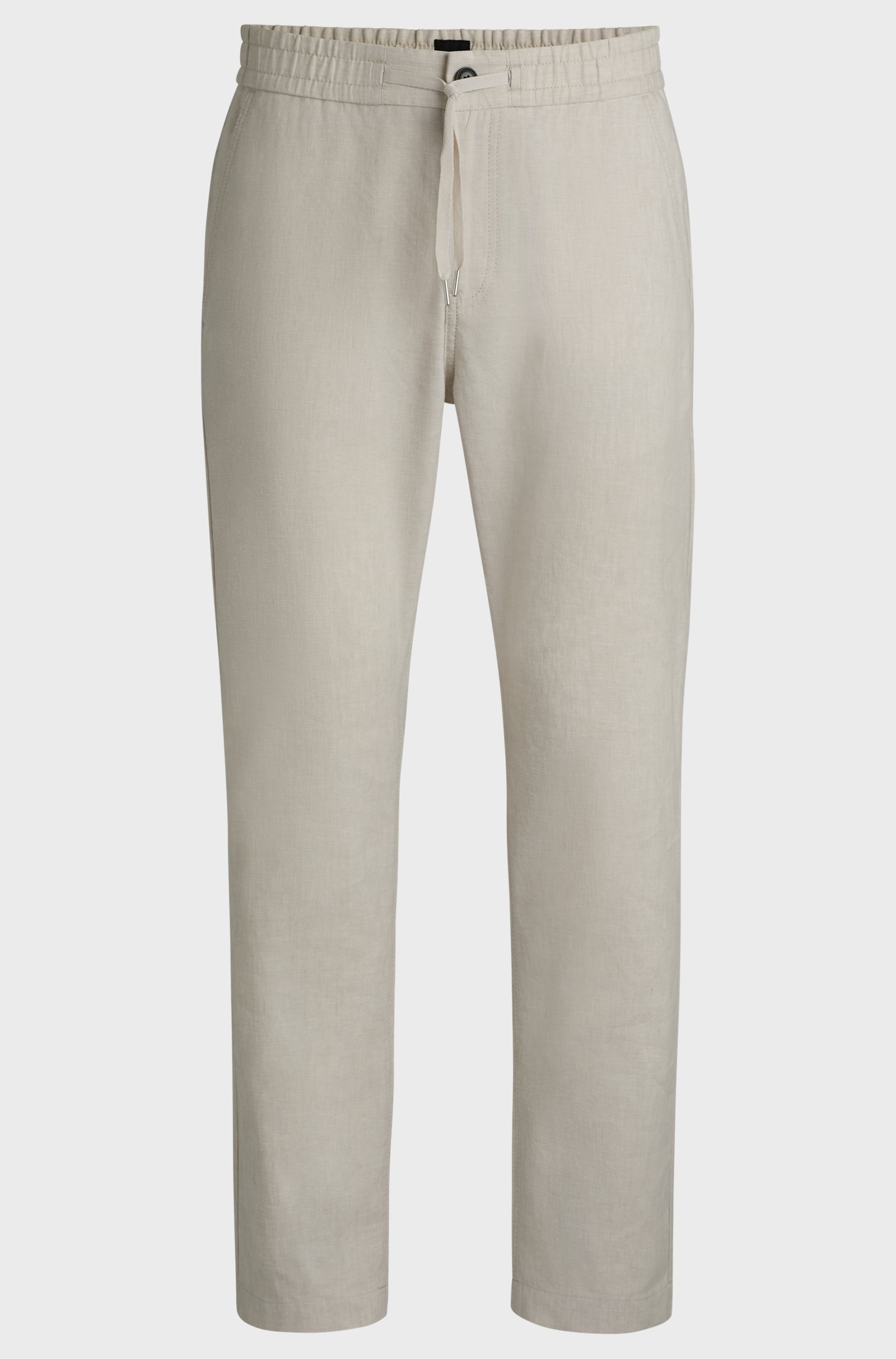 Easy to style, these BOSS Menswear trousers are crafted in a comfort-stretch linen blend. Their straight fit and drawstring waist create a casual silhouette.