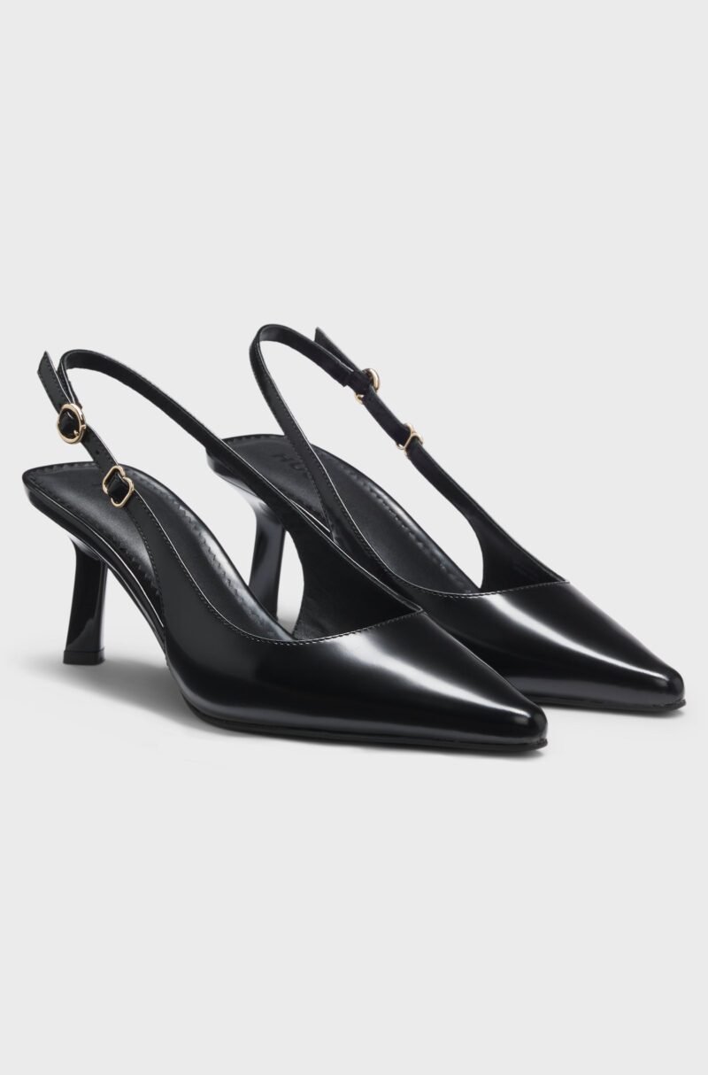 Add a sophisticated touch to everyday looks with the slingback profile and 7cm heel of these HUGO Womenswear pumps. Sleek leather with gold-tone hardware. This product contains at least 80% better raw materials. The leather used to make this product has been sourced from certified tanneries.