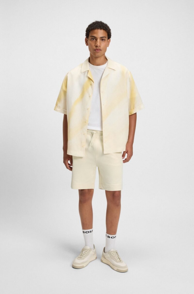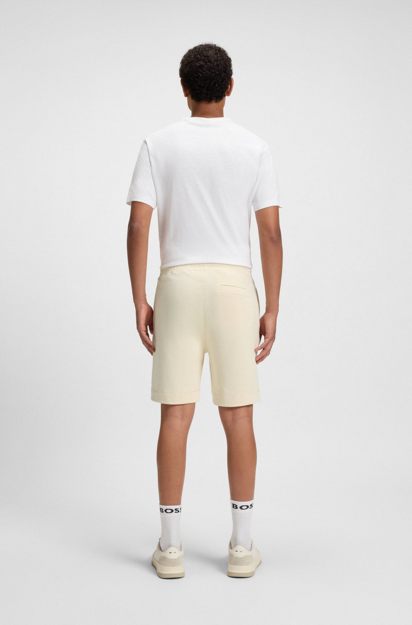 Signature cotton shorts by BOSS Menswear. Tonal rubber logo badge. Easy relaxed-fit. Elasticated drawstring waistband.