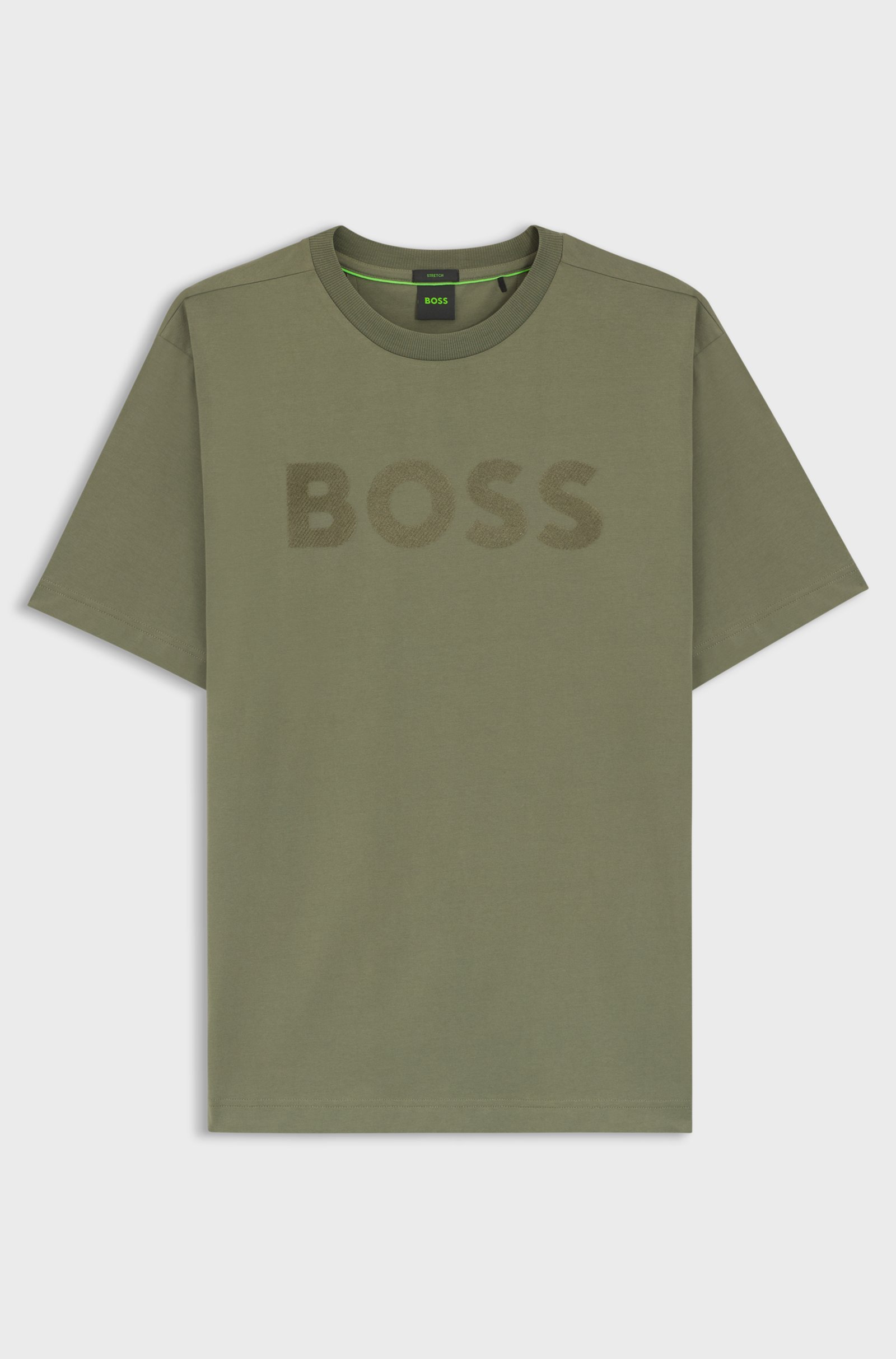 With its laid-back fit and statement logo, this BOSS Menswear T-shirt is a casual essential. Cut in stretch cotton with a weighty feel.