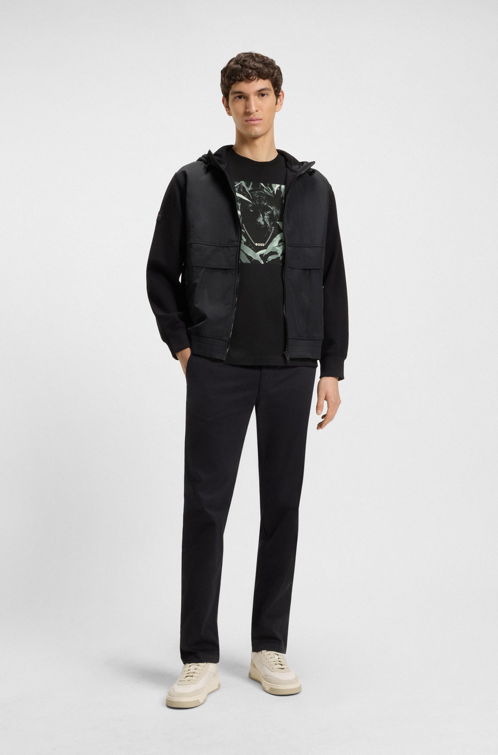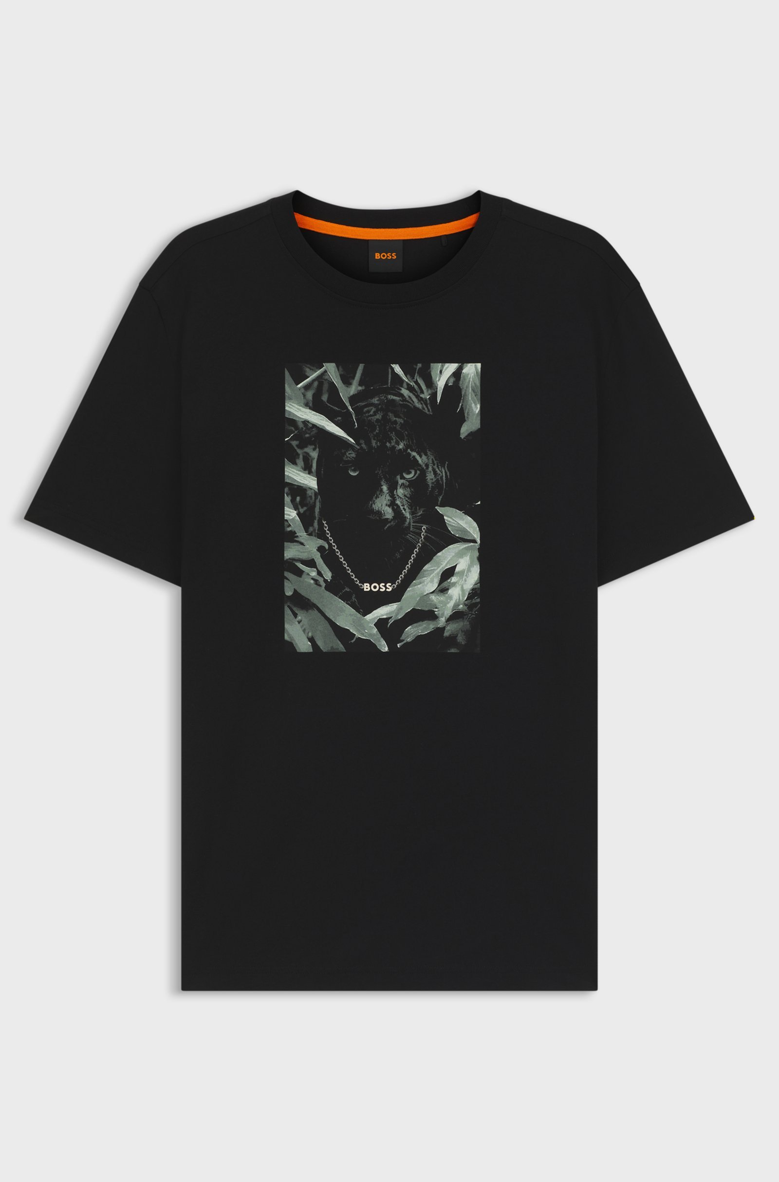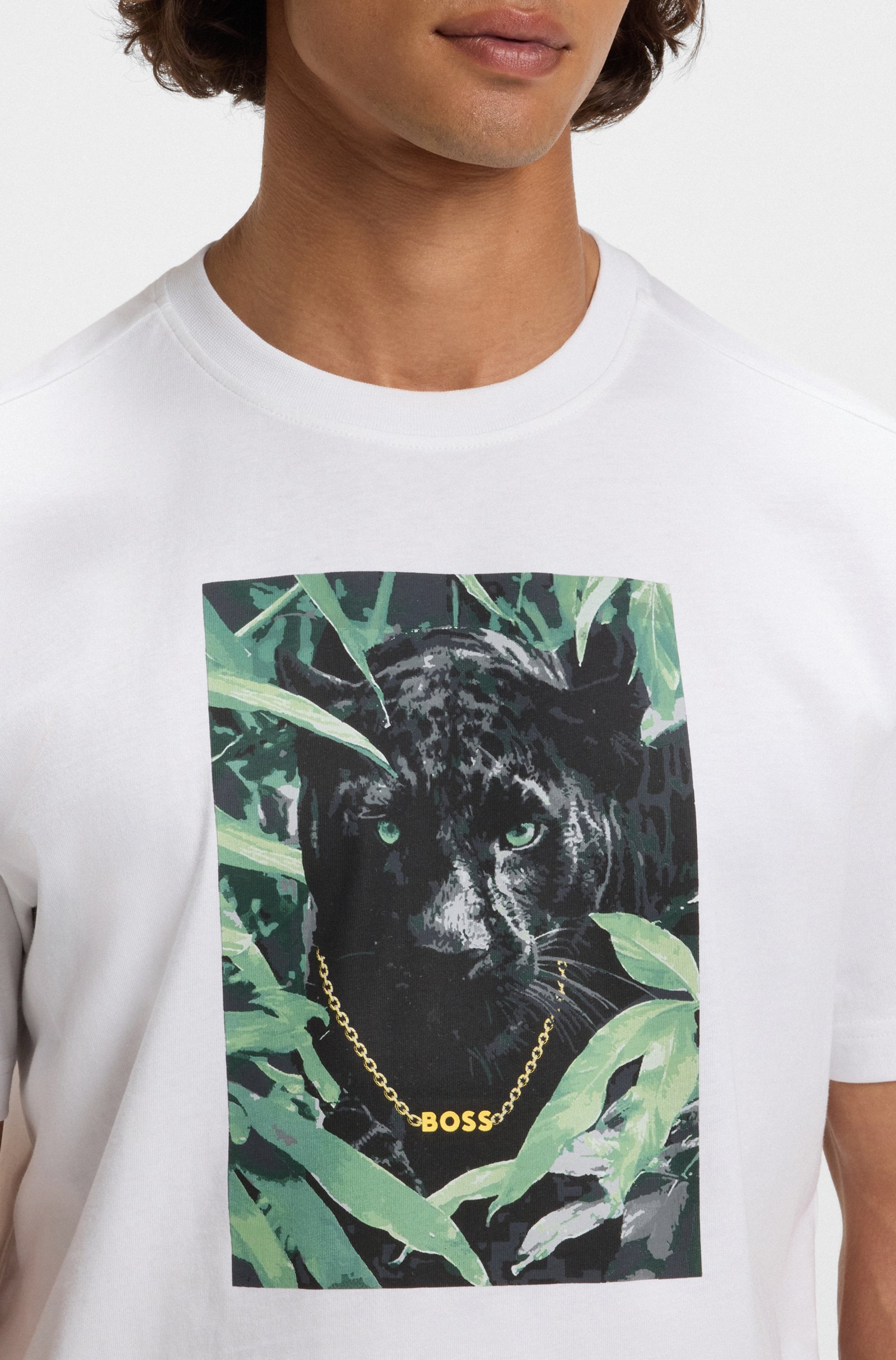 Cut to a straight fit, this crew-neck BOSS Menswear T-shirt grabs attention with its printed animal graphic. Soft cotton jersey.