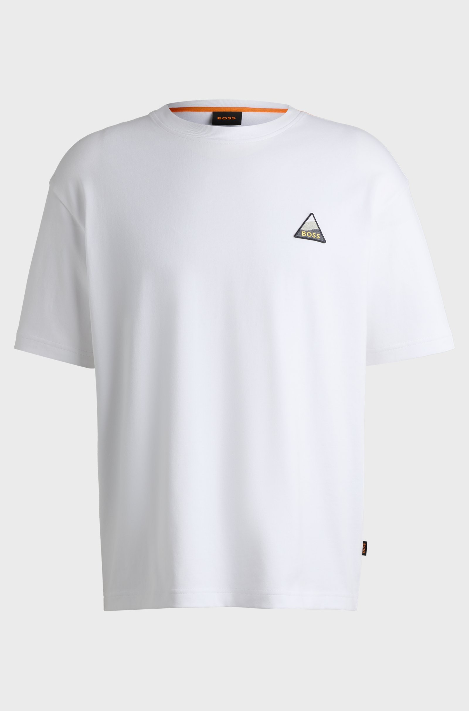 Trimmed with a logo patch, this BOSS Menswear T-shirt will instantly refresh your casuals. Cut to a laid-back fit in breathable cotton jersey.