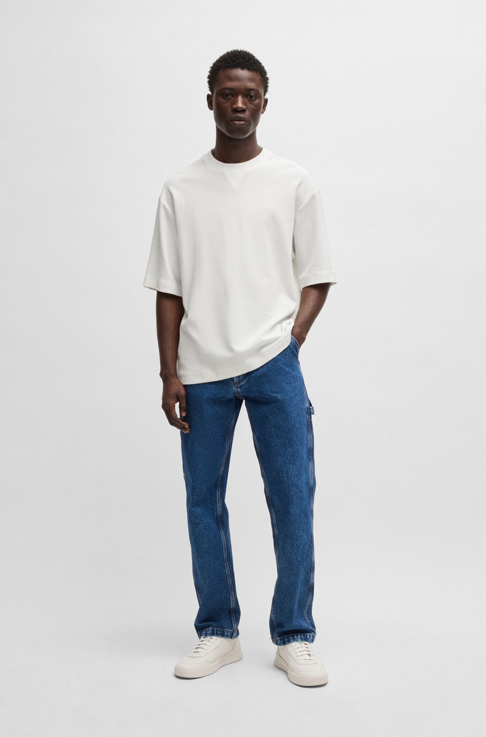With rich stitching and a centre-back cutline, this BOSS Menswear T-shirt is a modern casual option. Easy laid-back fit. Subtle logo embroidery. This product’s raw material is derived from regenerative agriculture: an approach focused on preservation and restoration that aims to increase biodiversity, preserve water quality and improve soil health while absorbing CO2. Regenerative agriculture also promotes animal welfare and fair working conditions for farmers.