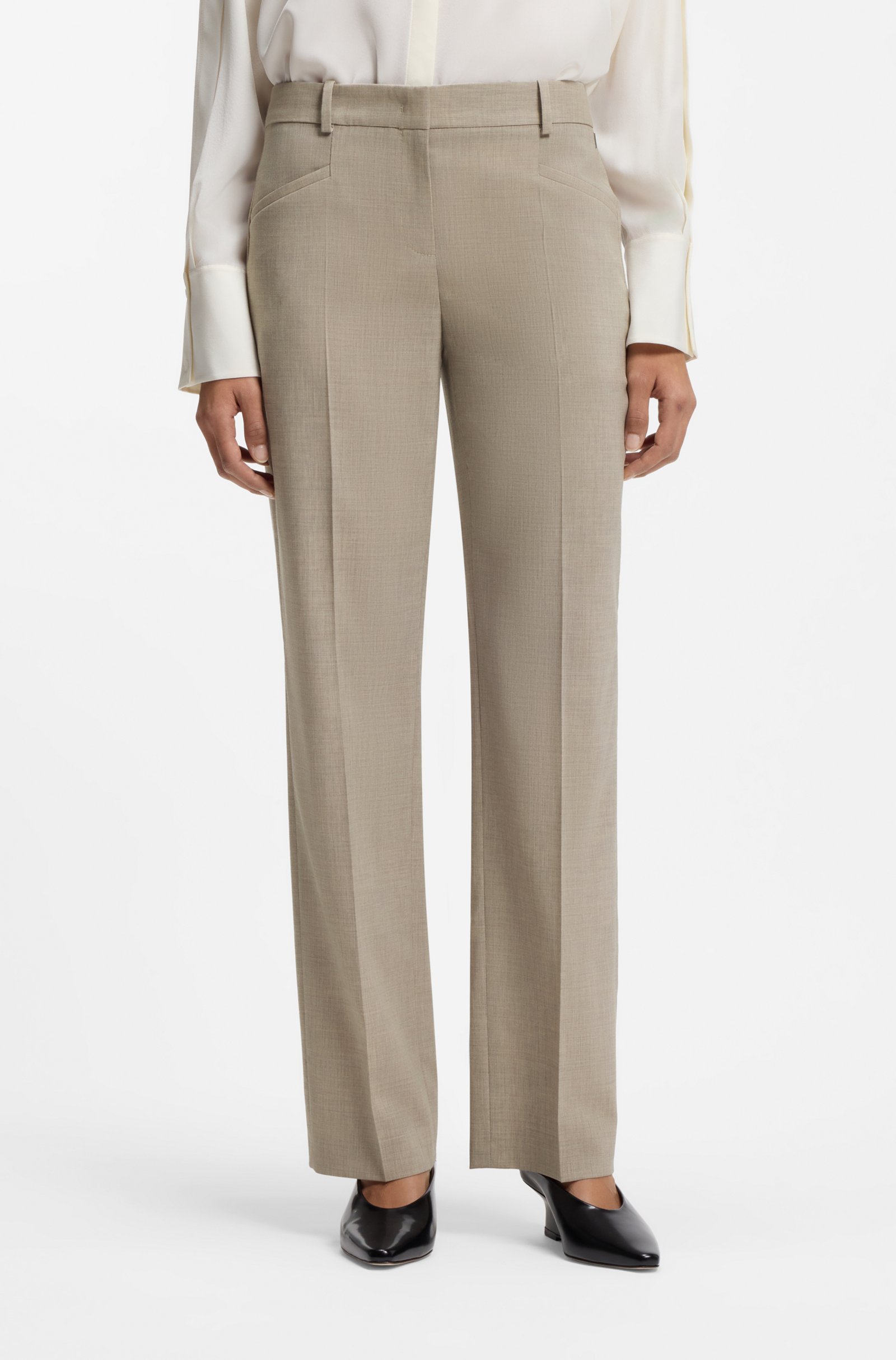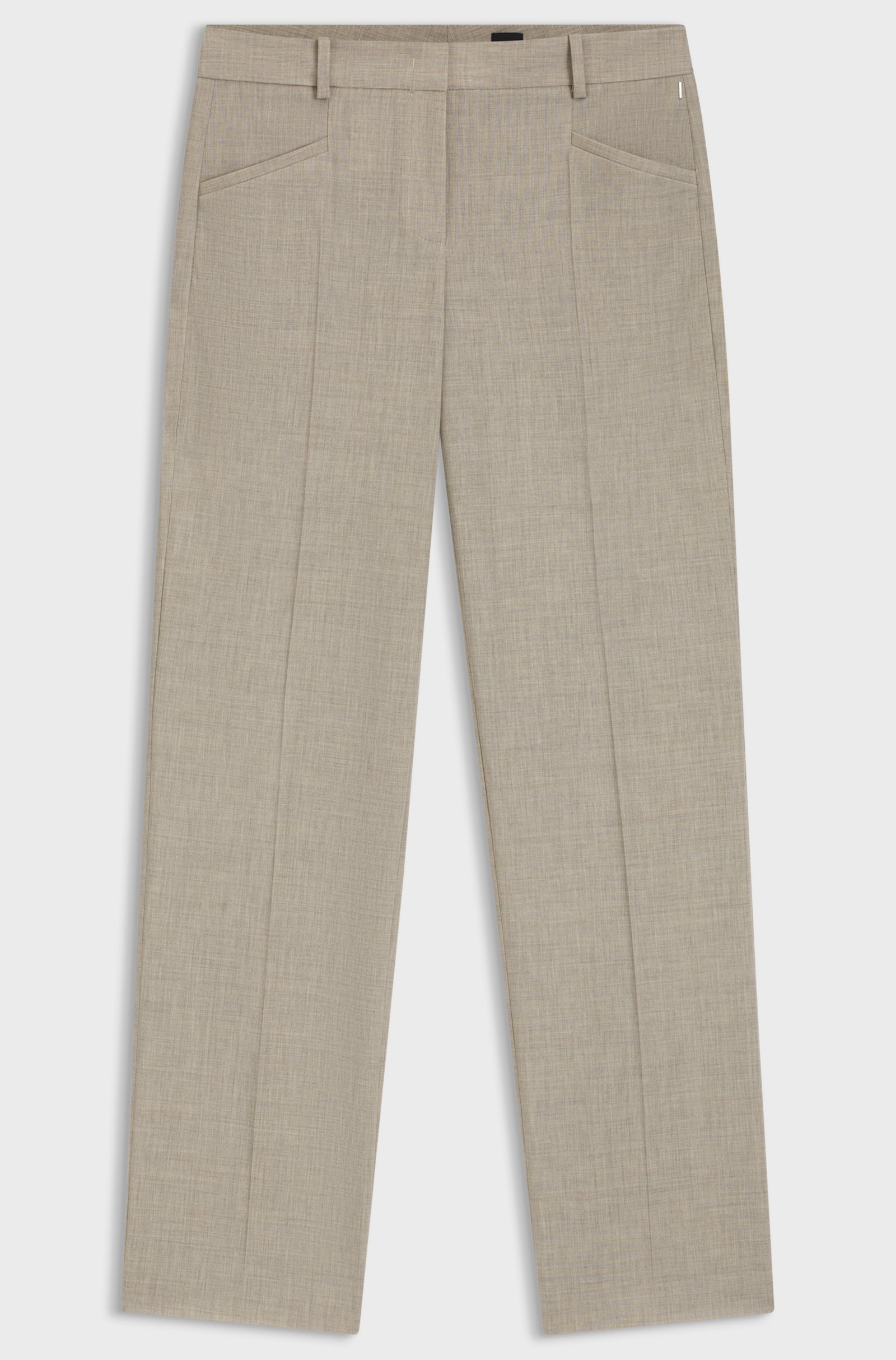 With a relaxed fit and subtle melange effect, these straight-leg BOSS Womenswear trousers provide a versatile formal foundation. Virgin wool with natural stretch. This product contains at least 80% better raw materials. This product is made with responsibly sourced wool. For us, responsibly sourced means mulesing free, and meeting the standards of the Five Freedoms of animal welfare.